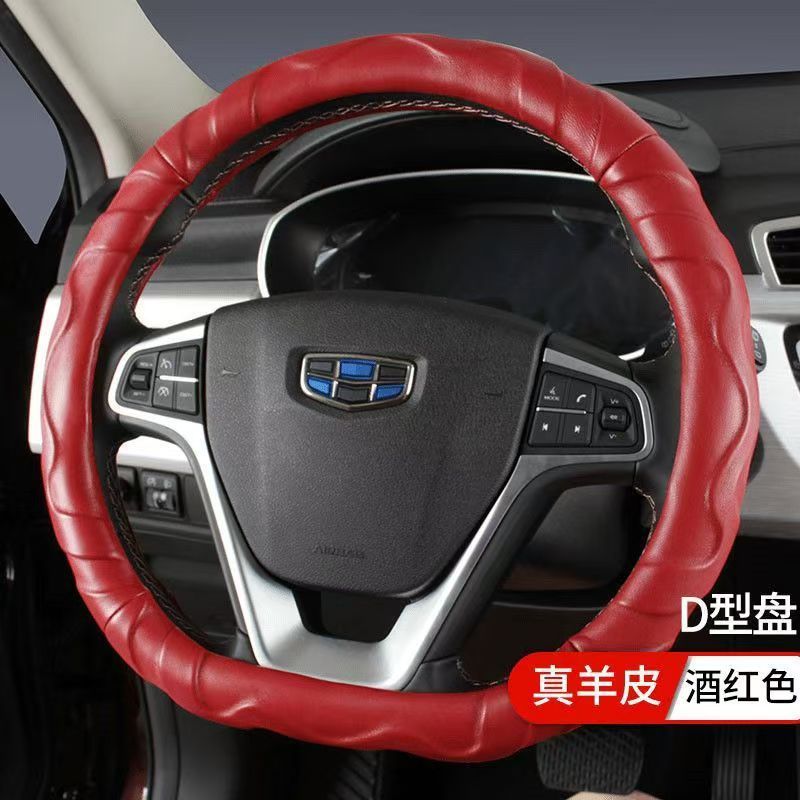 [피델리티] 순수한 양가죽 가죽 스티어링 휠 커버 사계절 유니버설 자동차 핸들 커버 o-type d-type 그물 붉은 폭발