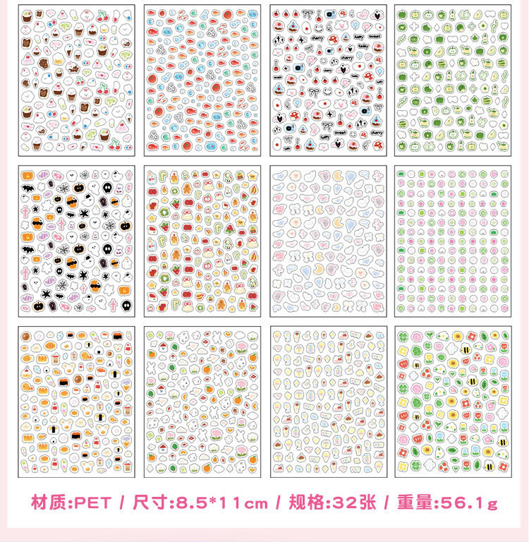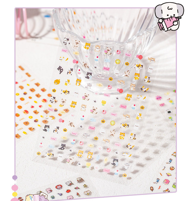 언어 유휴 직조 꿈 도파민 스티커 책 미니 낙서 작은 코 카르마 애완 동물 컷 필름 스티커 책 손 계정 네일 아트 스티커