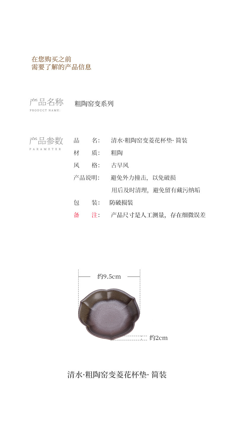 큐이시야오 거친 도자기 가마, 마름모 모양의 컵받침, 컵받침, 세라믹 차 세트, 절묘한 차 세트 액세서리, 쿵푸 차 세트스토어 가기
