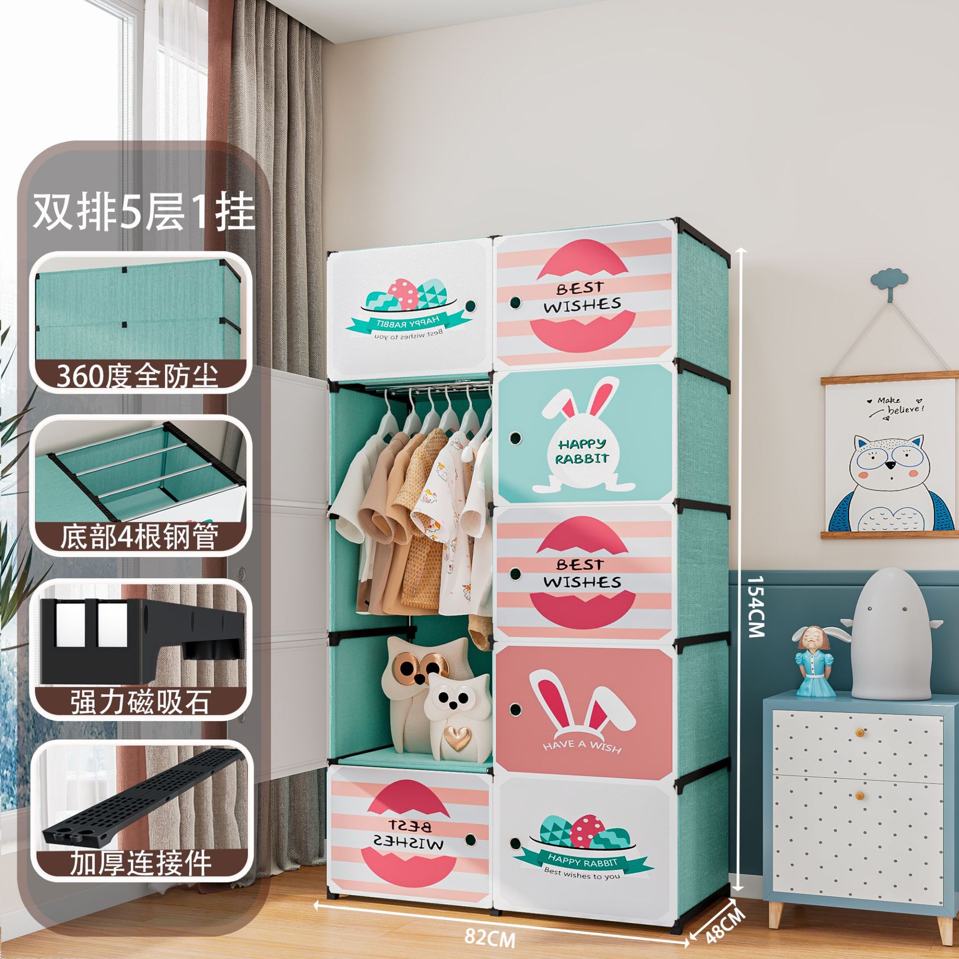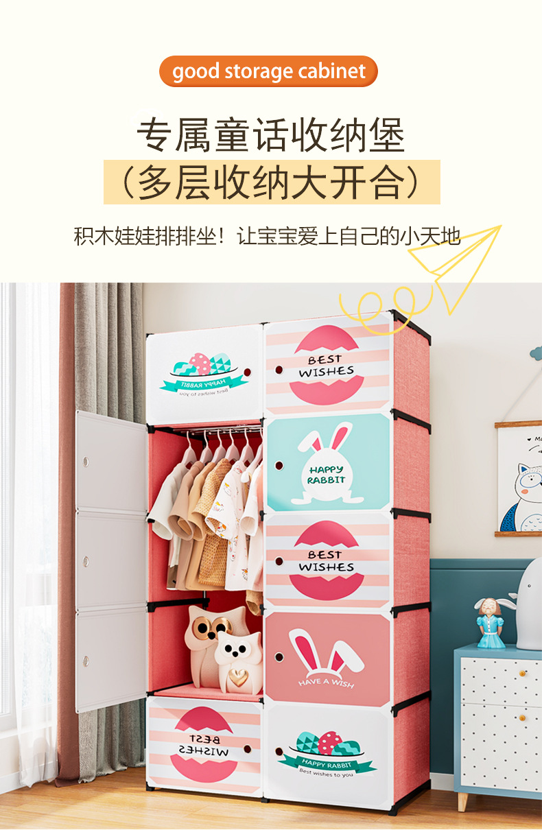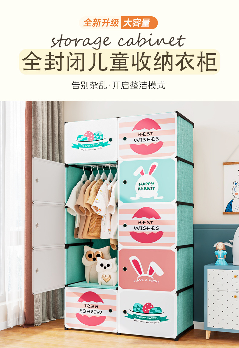 어린이 옷장 플라스틱 옷장 두꺼운 업그레이드 아동 옷장 수납 아기 옷장 DIY 조립식 옷장