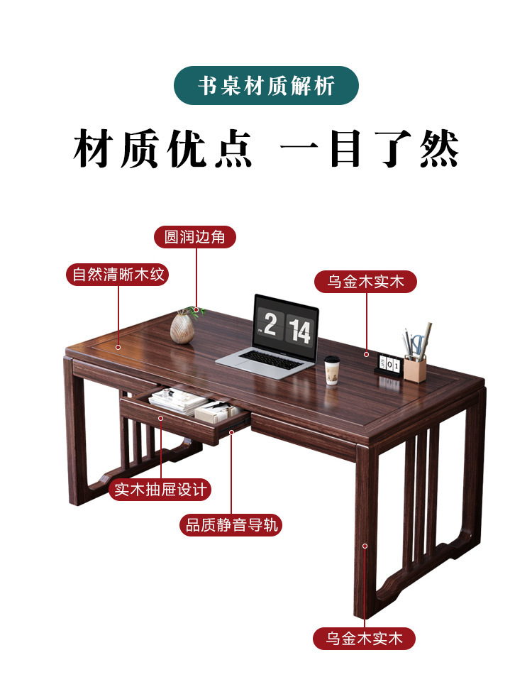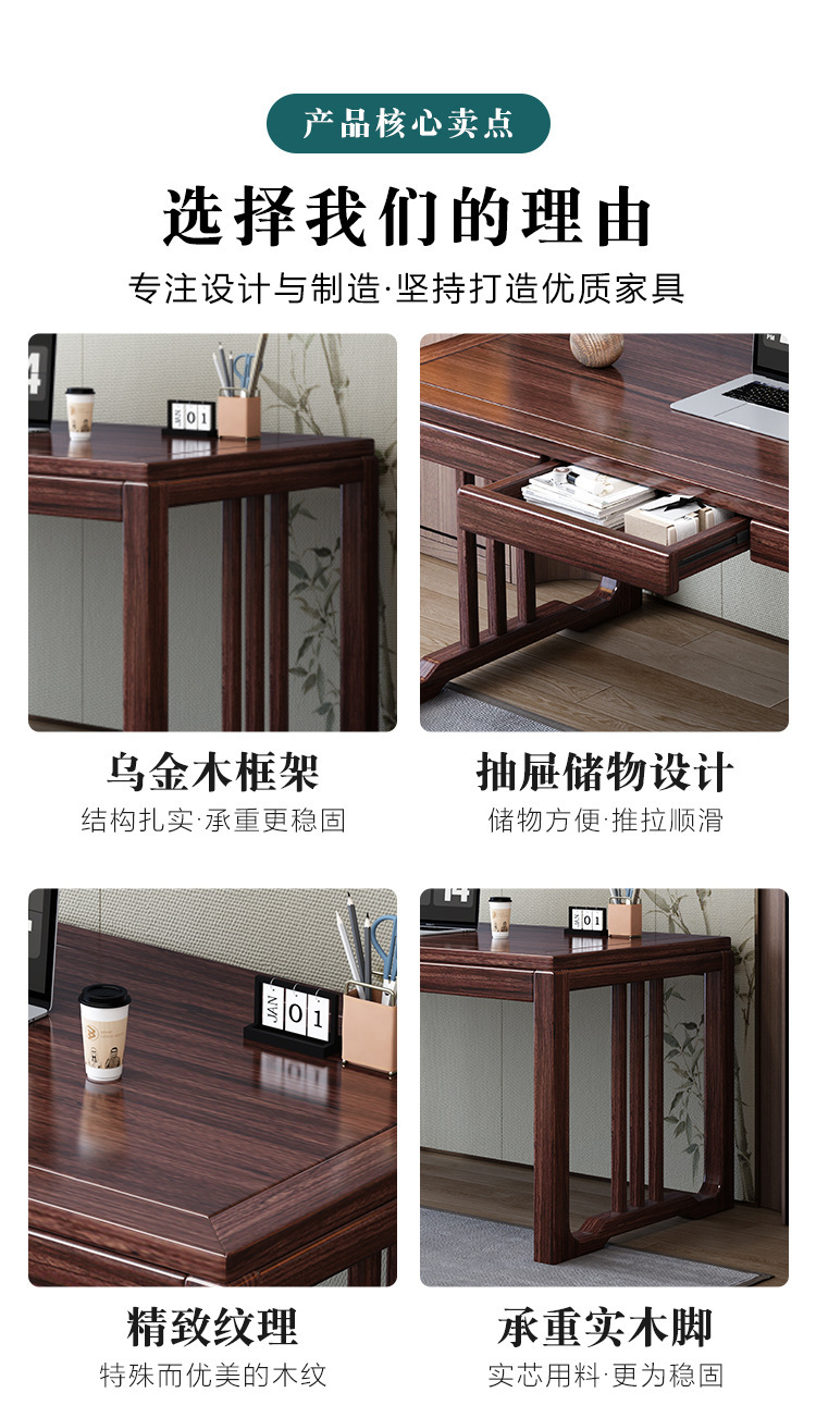 검은 골드 우드 새로운 중국 스타일 단단한 나무 책상과 의자 조합 현대 간단한 연구 컴퓨터 책상 책상 사무실 책상 공장스토어 가기