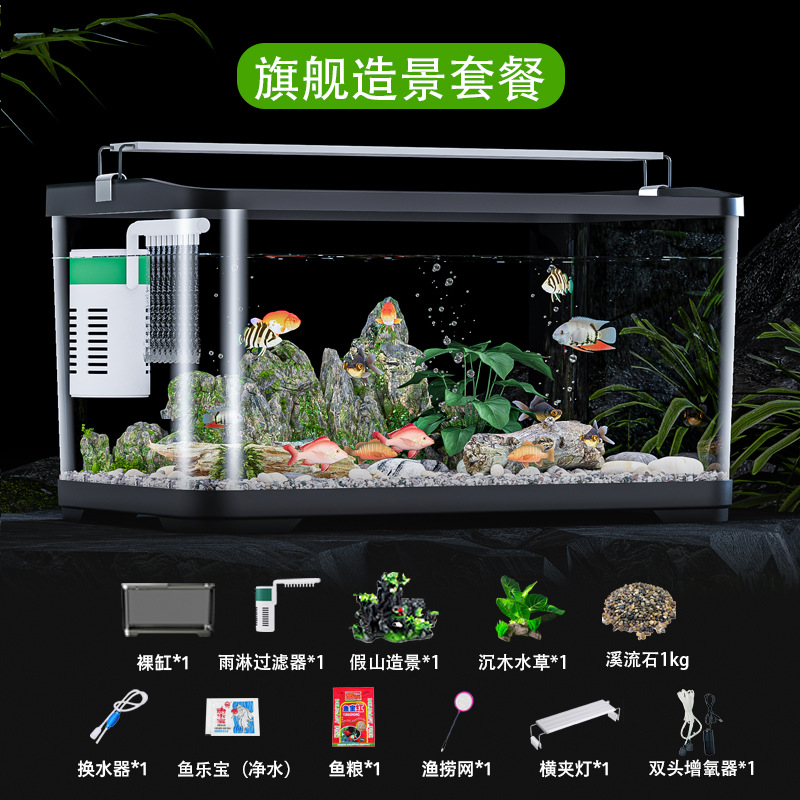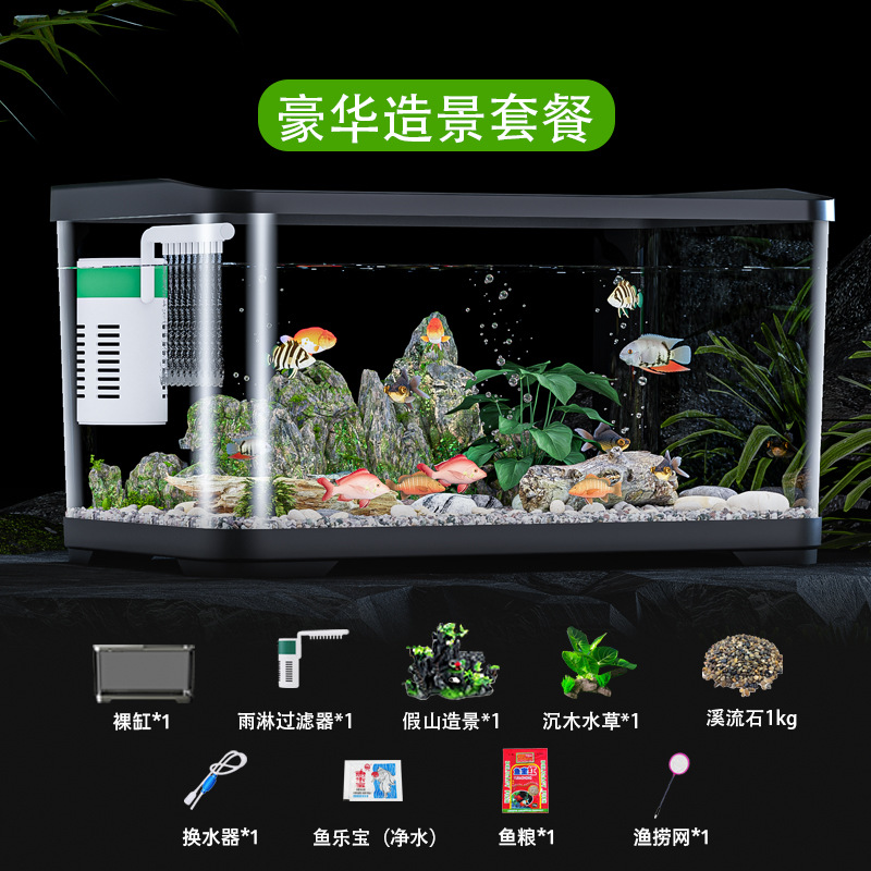 필터가 포함된 수조 산소 발생기, 거실, 소형 가정용 생태계, 계곡 조경, 데스크탑 아크릴 관상 수조스토어 가기