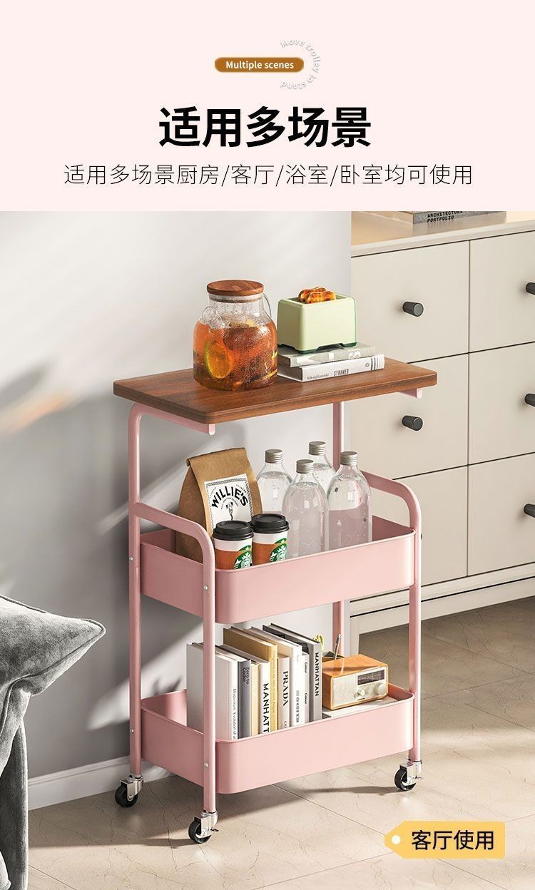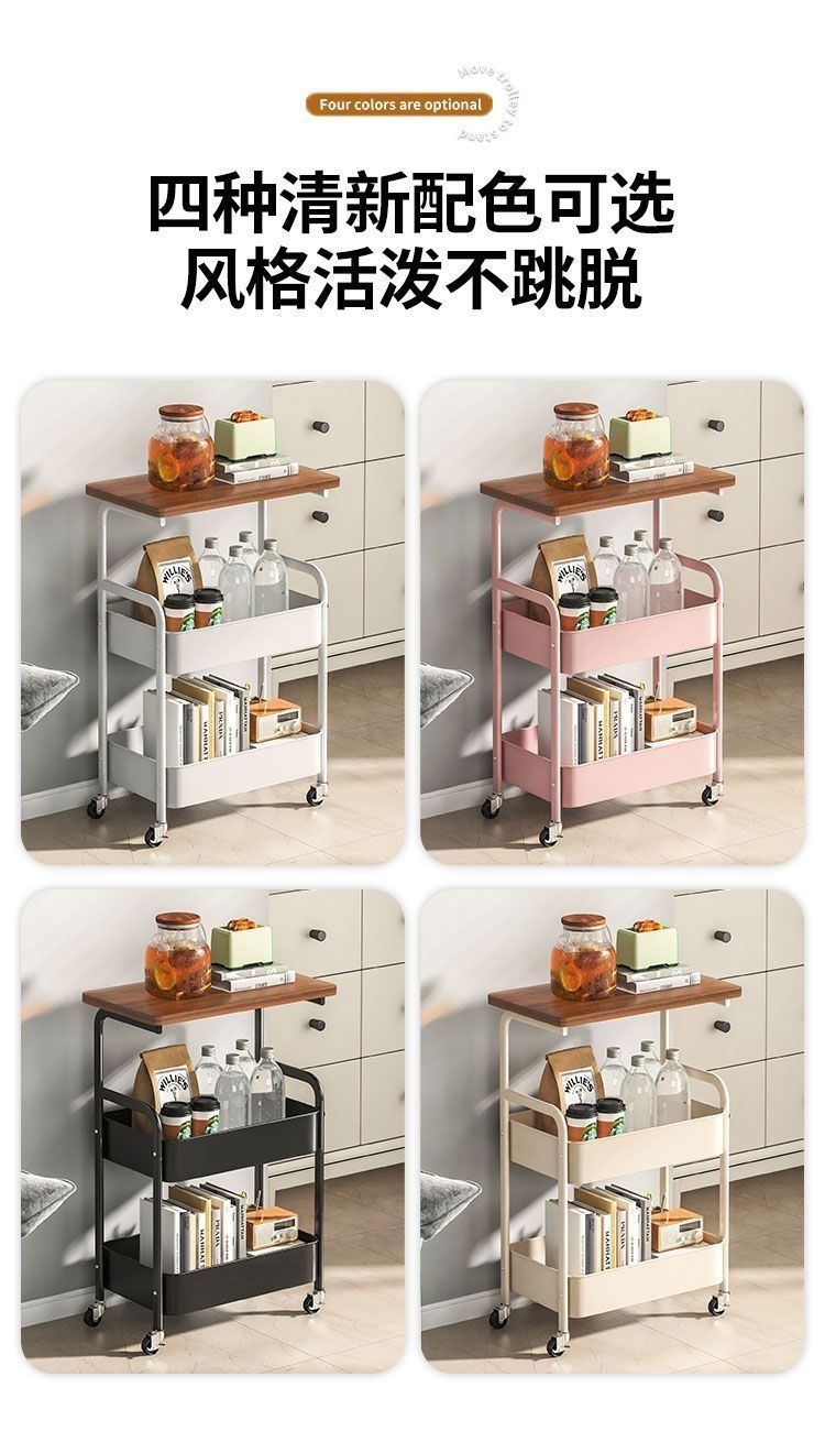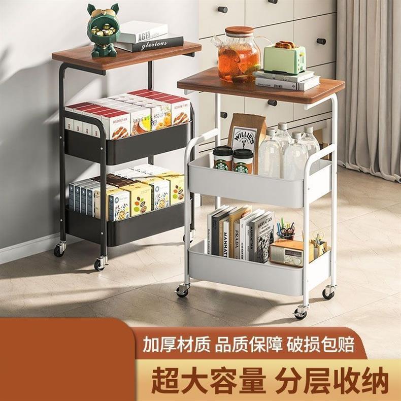 테이블 보드가있는 이동식 스토리지 랙 사이드 테이블 다층 홈 거실 커피 테이블 장난감 스낵 트롤리 스토리지 랙