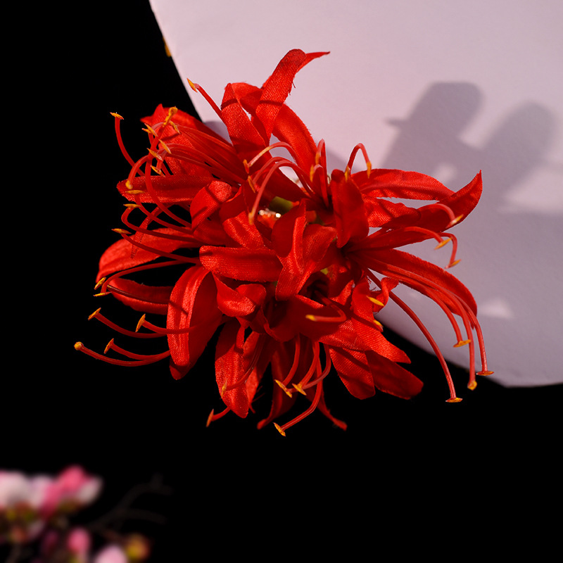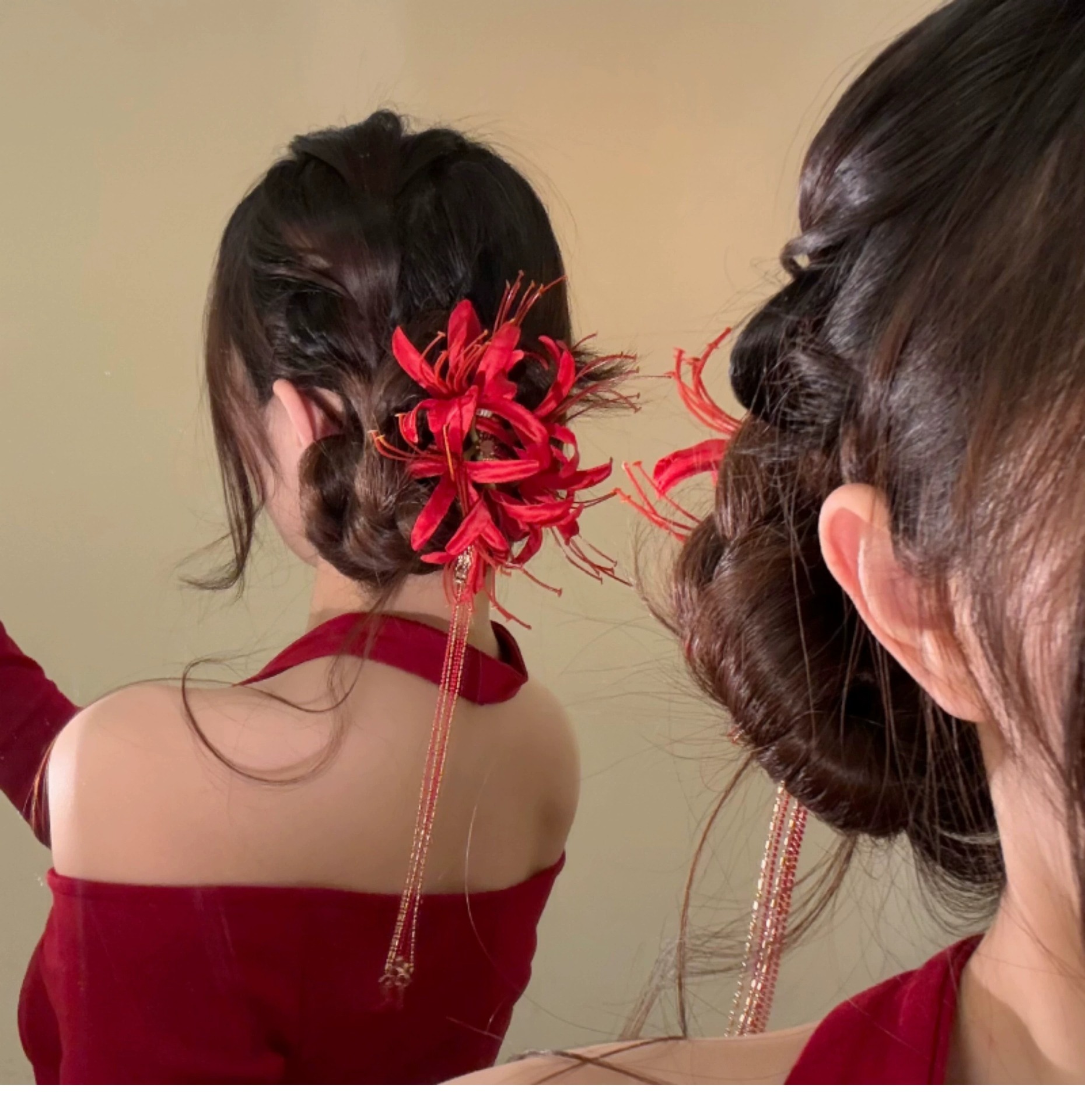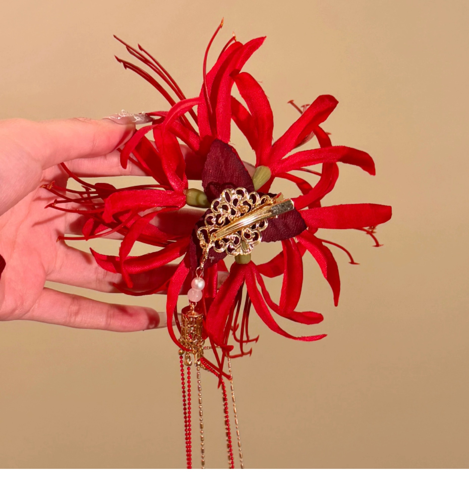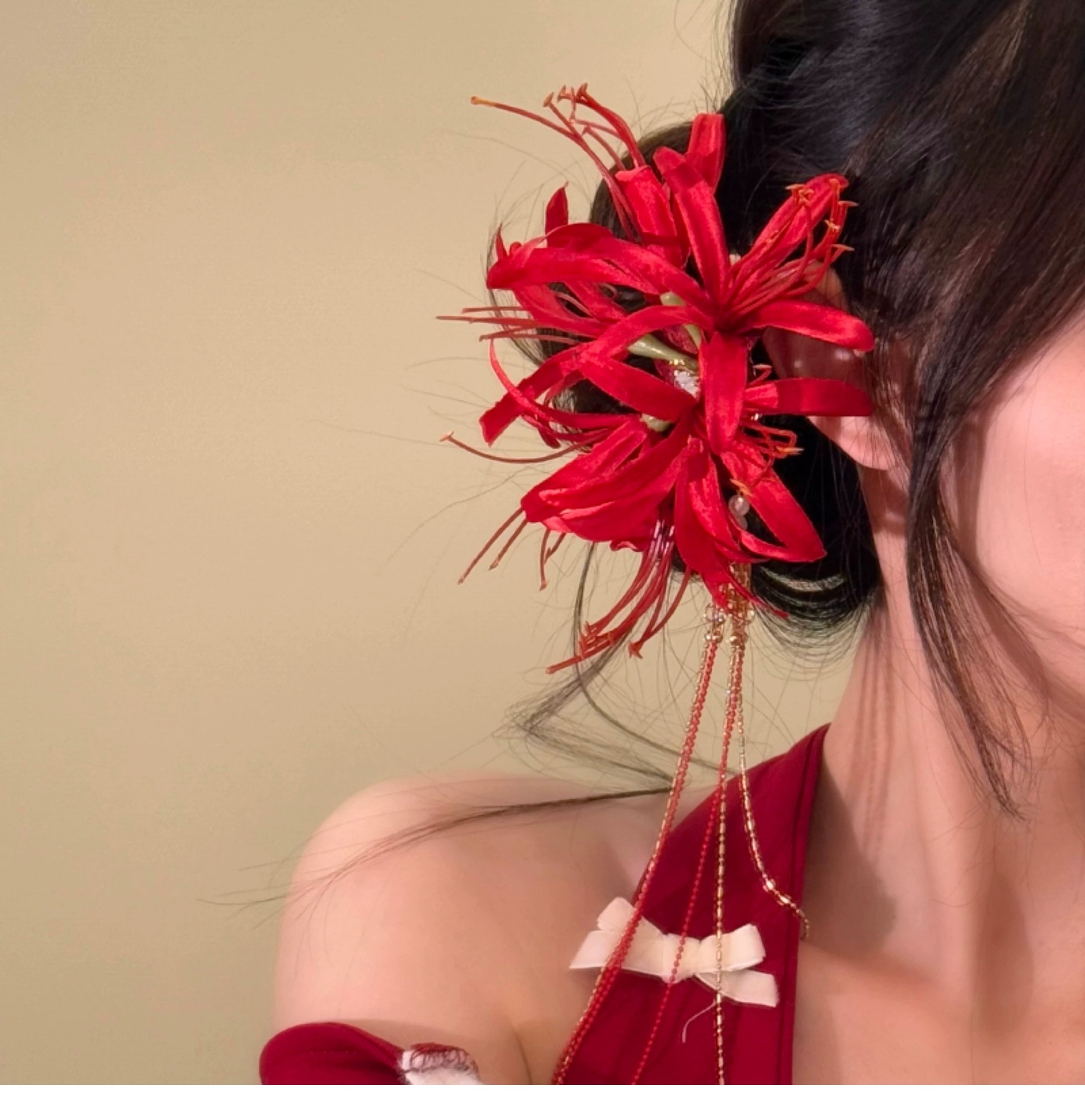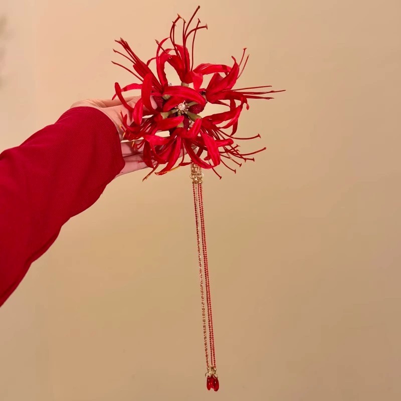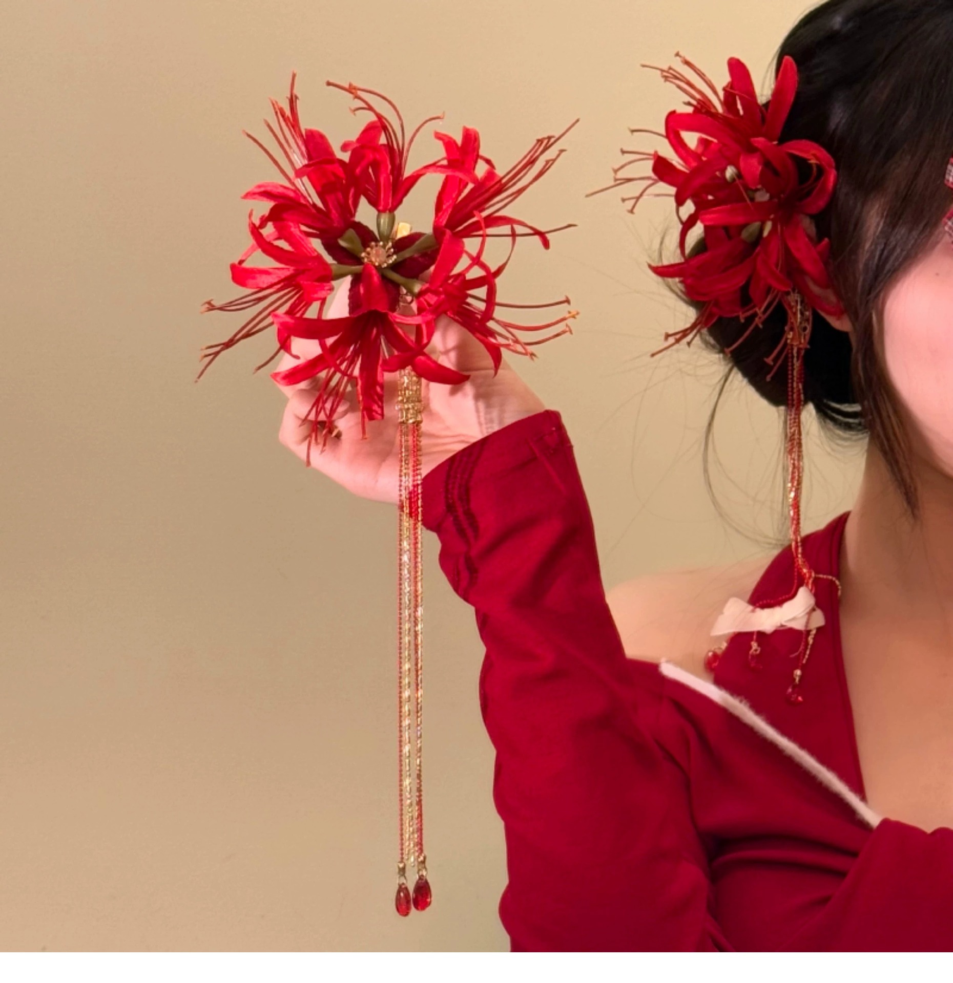 빨간 Bianhua 슈퍼 페어리 헤어핀 헤어핀 시뮬레이션 실크 꽃 헤어 액세서리 골동품 한후 머리 초상화 꽃 액세서리