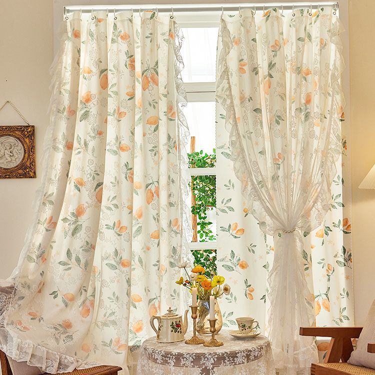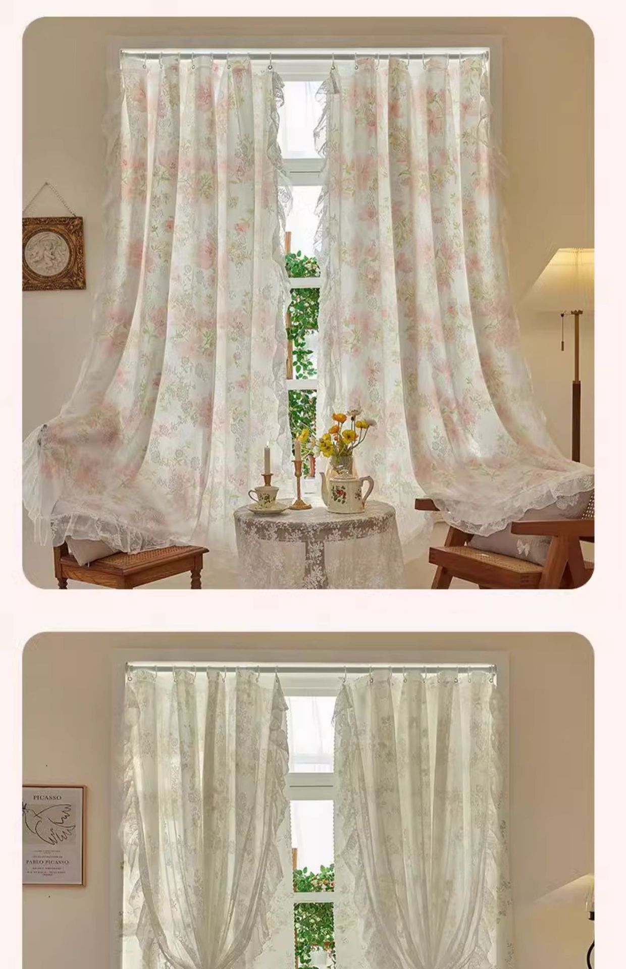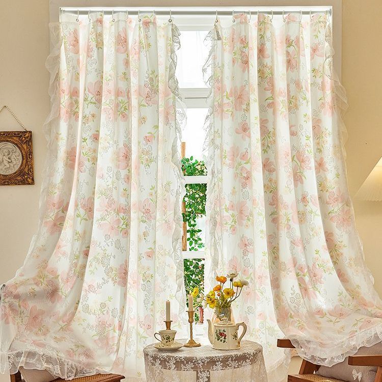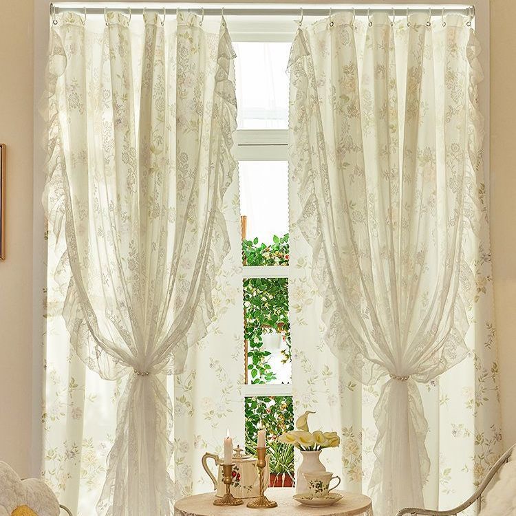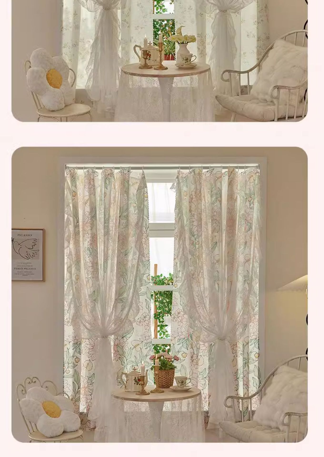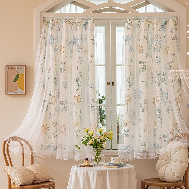 프랑스 로코코 목가적 스타일 커튼 레이스 더블 레이어 거즈 미국 복고풍 거즈 커튼 침실 작은 베드룸 창에 구멍을 뚫을 필요가 없습니다