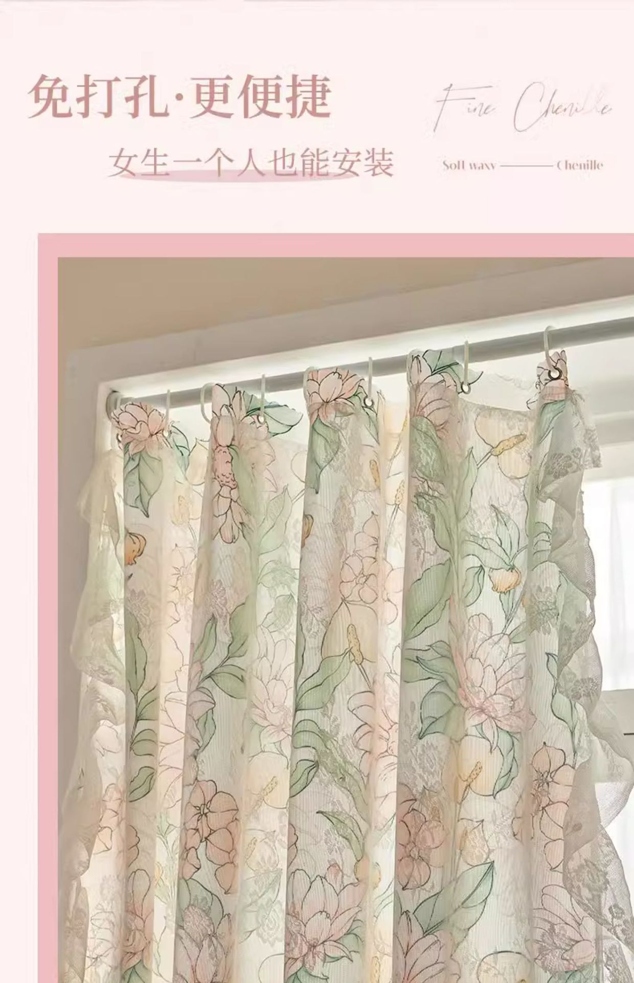 프랑스 로코코 목가적 스타일 커튼 레이스 더블 레이어 거즈 미국 복고풍 거즈 커튼 침실 작은 베드룸 창에 구멍을 뚫을 필요가 없습니다스토어 가기