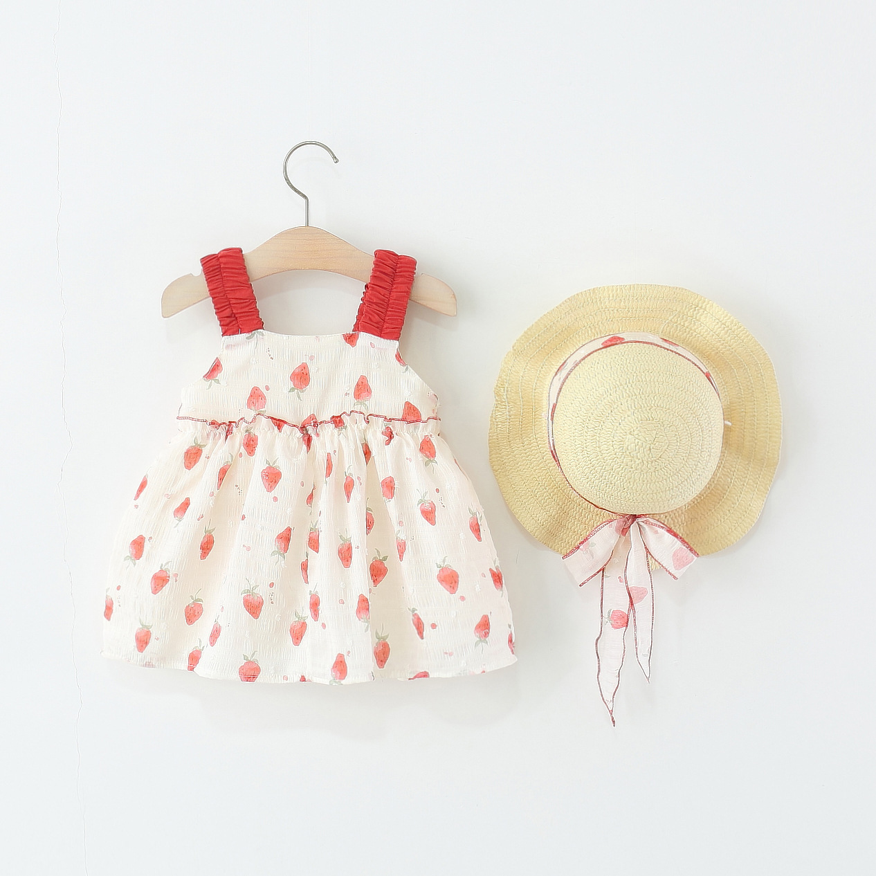 아동복 2025 새 여아 원피스 여름 어린이 아기 딸기 슬링 베스 원피스 어린이 공주 원피스스토어 가기