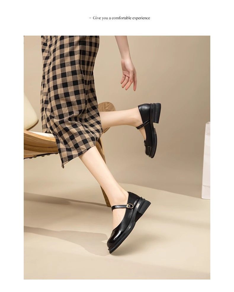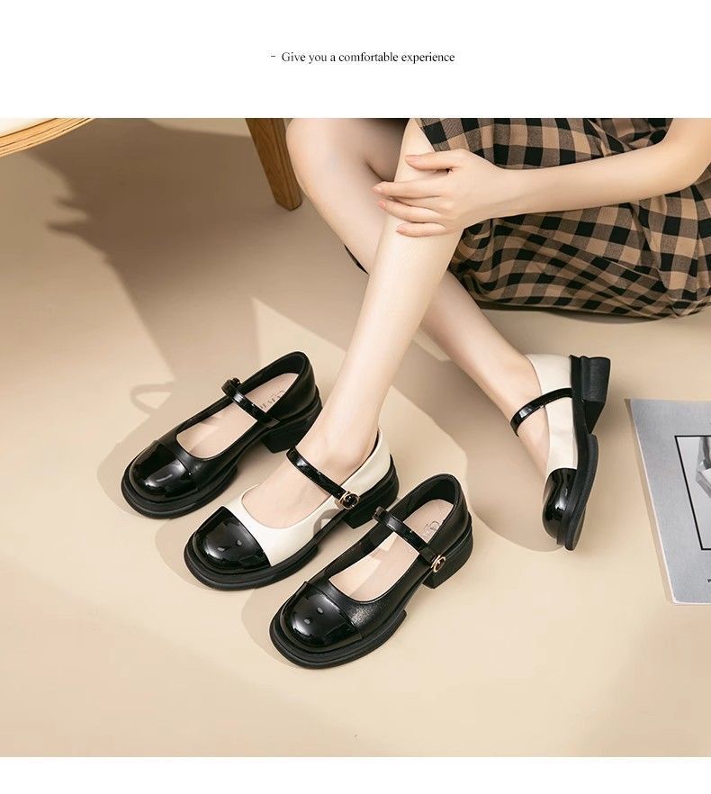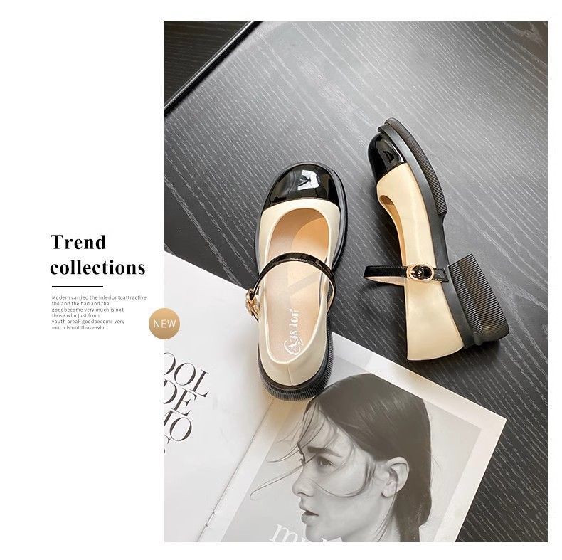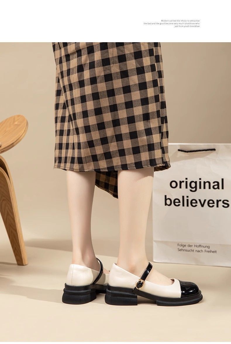 굽높이 3CM 메리 2025 가죽신 프렌치 흑백 스플라이싱 다용도 복고풍 얕은 입구 신상 로퍼스토어 가기