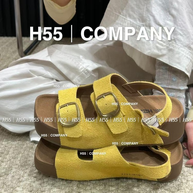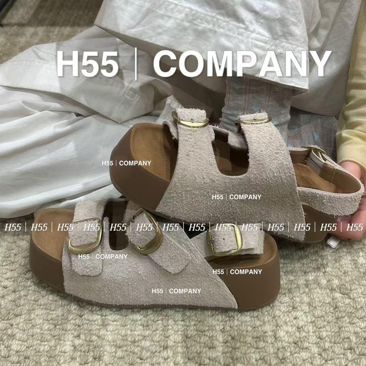 부드러운 가죽 버전 ~ 두꺼운 밑바닥 보켄 샌들 여성 여름 의상 한국 스타일 레트로 요정 스타일 홀리데이 비치 로마 신발