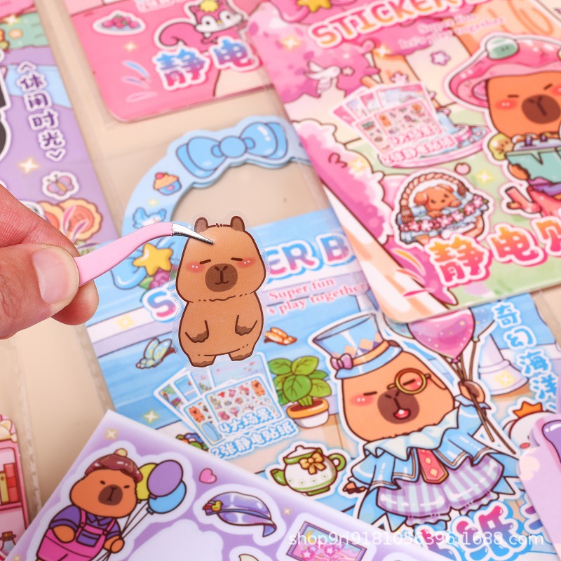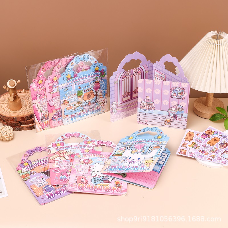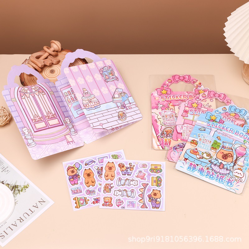 每本素材包括:三折页本子*1 经典场景*4 静电贴纸*2份