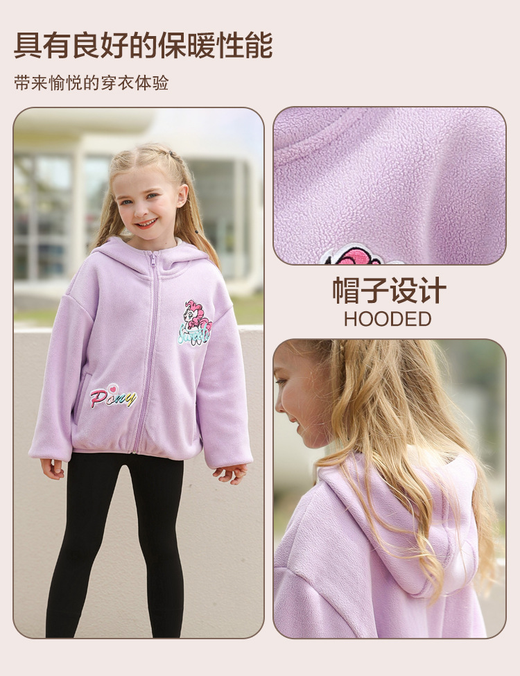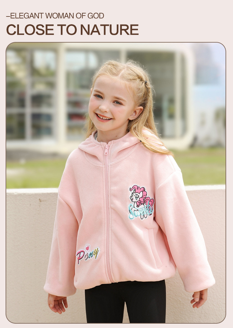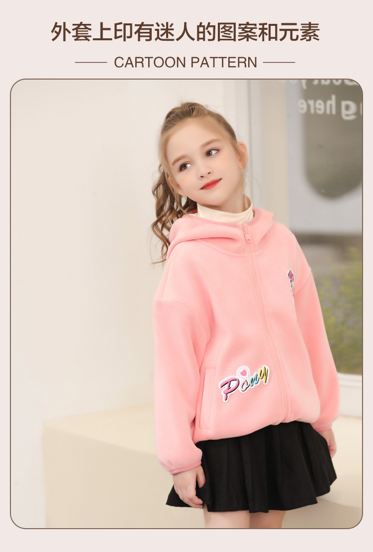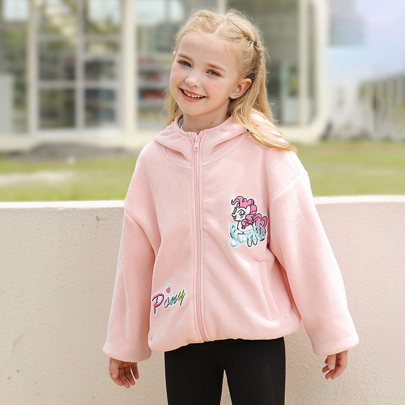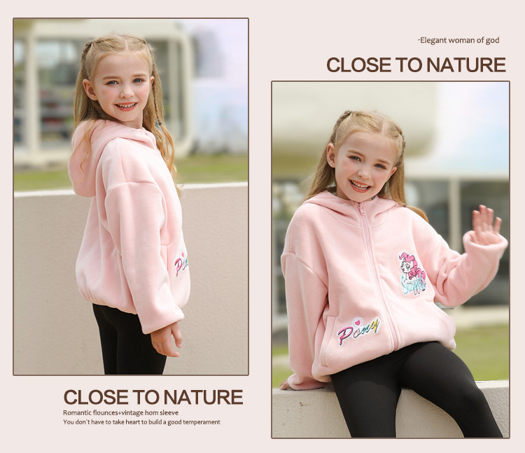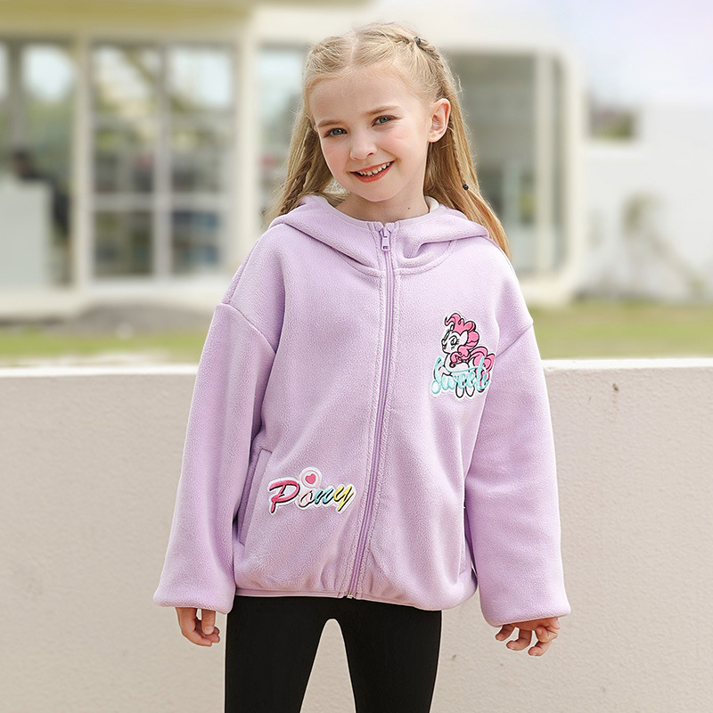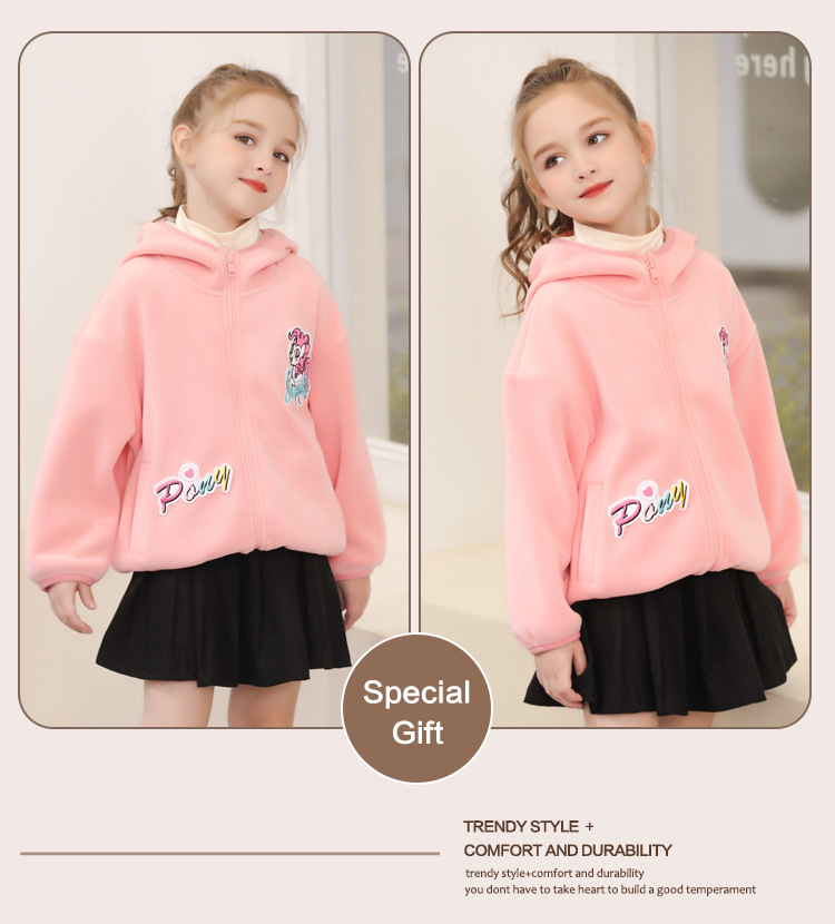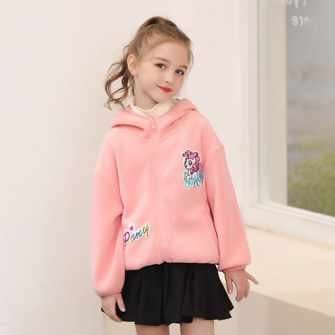 아동 의류 소녀 봄, 가을 2025 새로운 코트 폴라 플리스 느슨한 유행 귀여운 단색 긴팔 후드 자켓스토어 가기