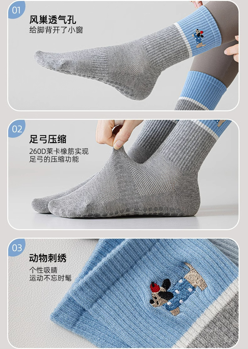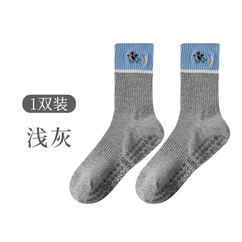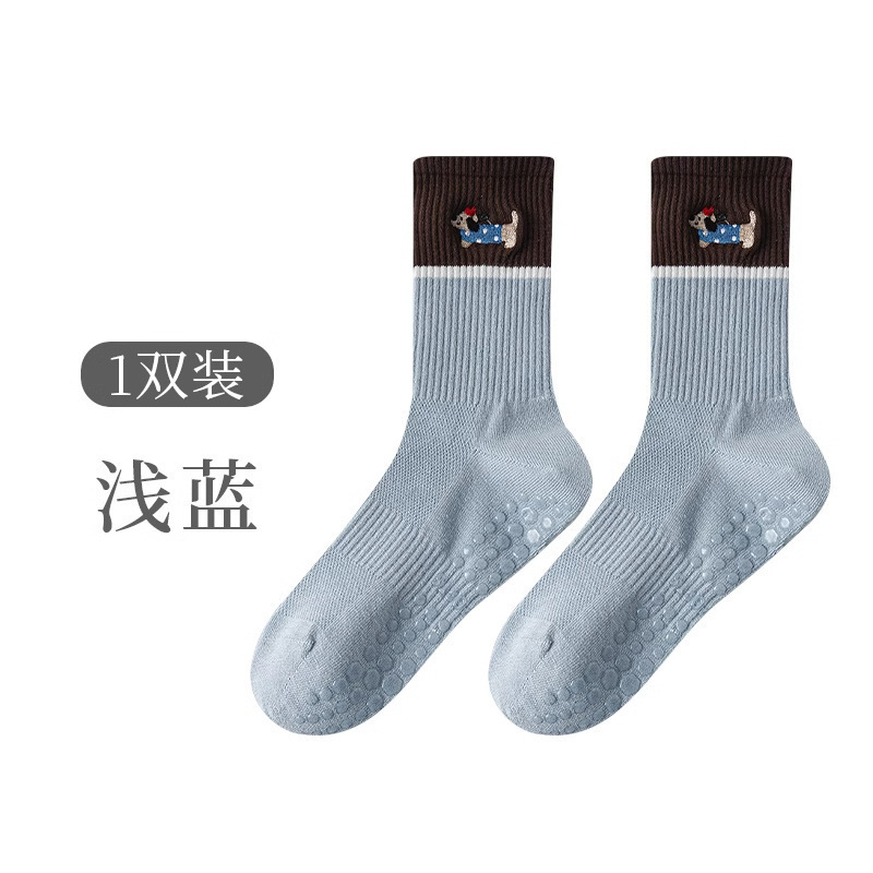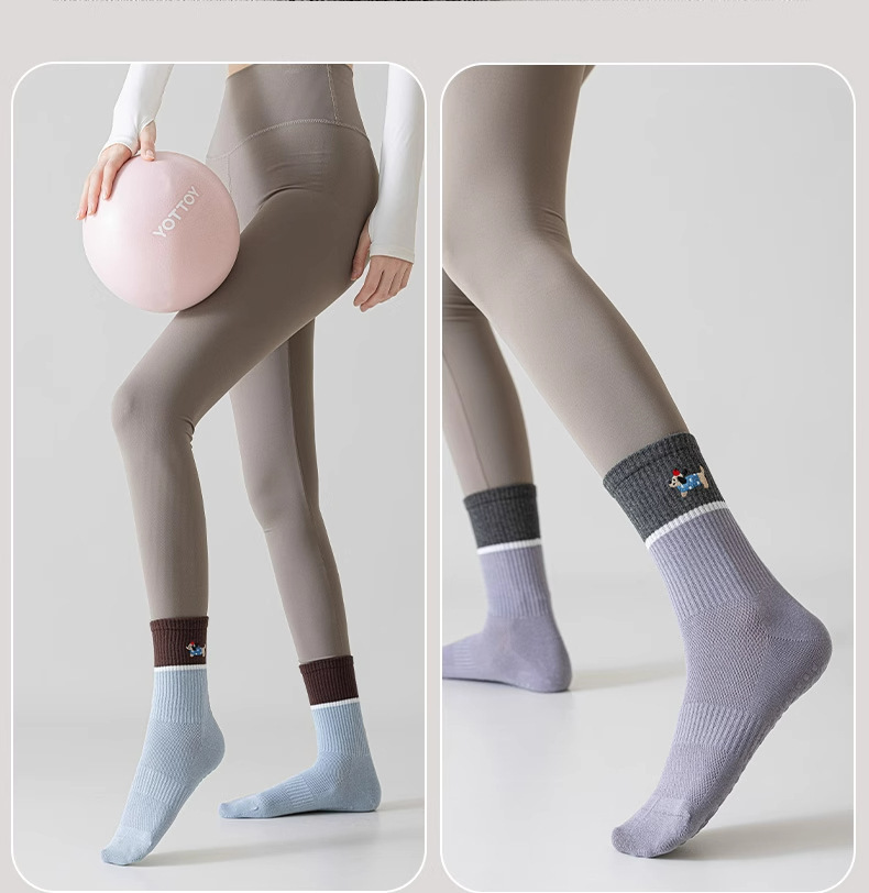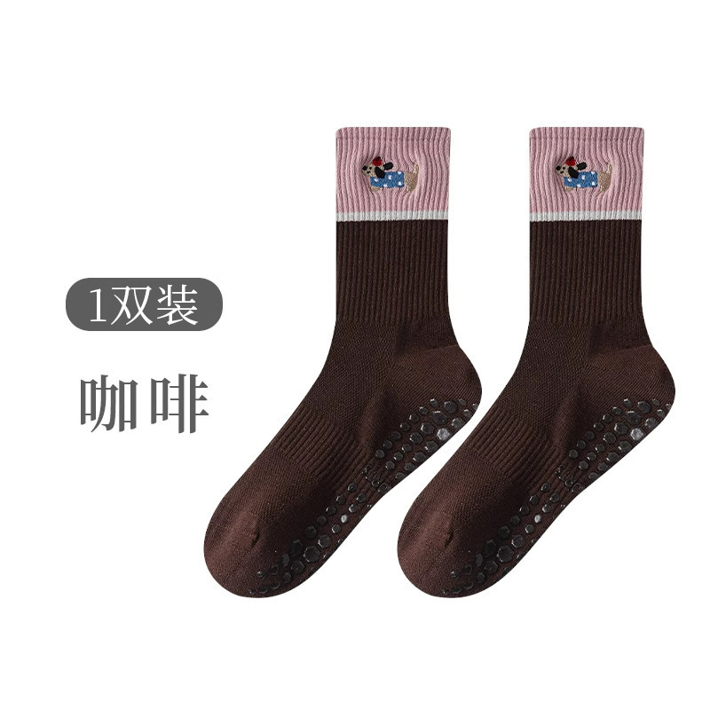 닥스훈트 자수 실리콘 미끄럼 방지 요가 양말 여성용 종아리 중간 양말 대비 색상 실내 침묵 필라테스 스포츠 피트니스스토어 가기