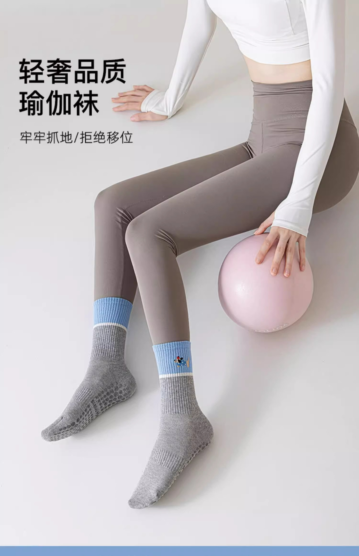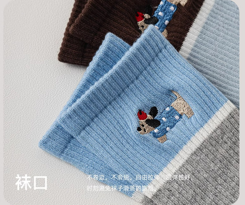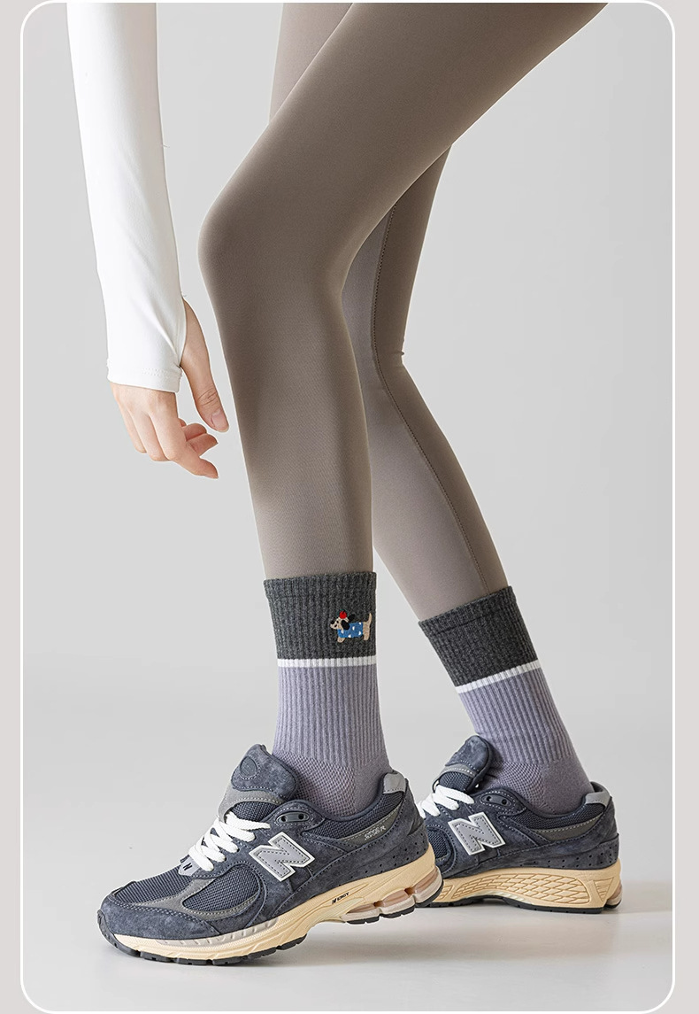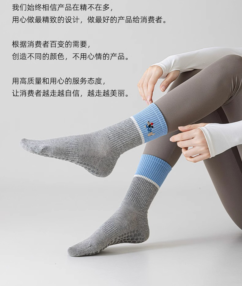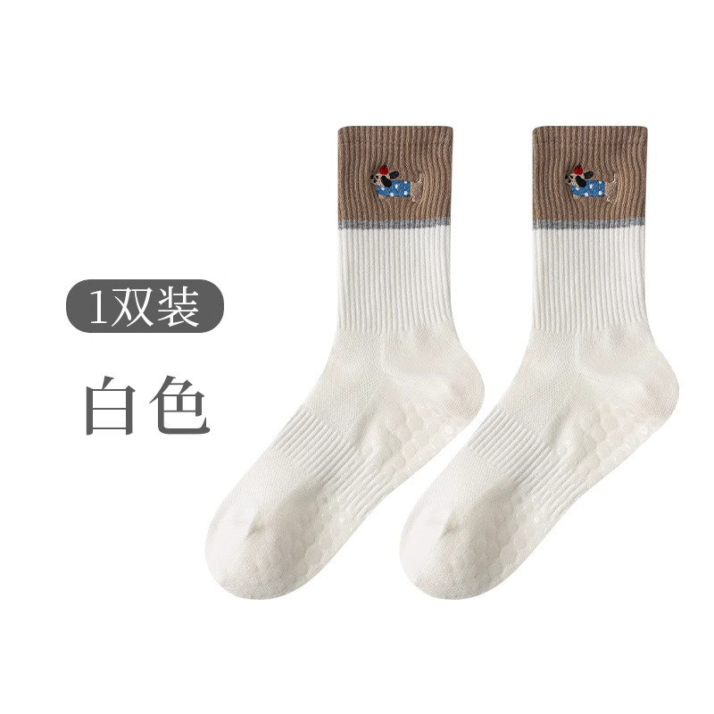 닥스훈트 자수 실리콘 미끄럼 방지 요가 양말 여성용 종아리 중간 양말 대비 색상 실내 침묵 필라테스 스포츠 피트니스스토어 가기