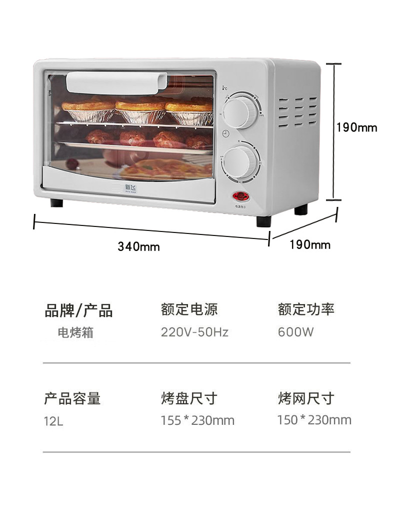 Rongshida 가정용 전기 오븐 12 리터 다기능 빵 소형 베이킹 올인원 미니 오븐 대용량