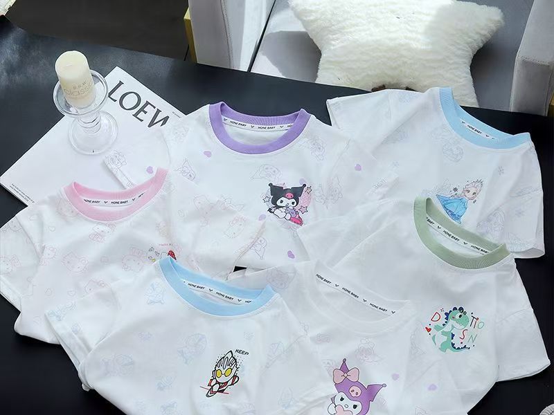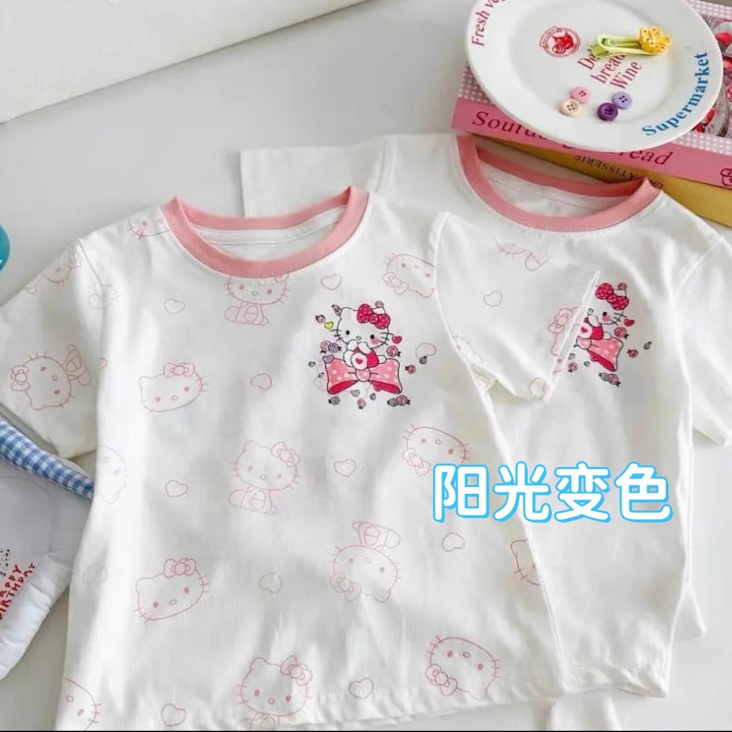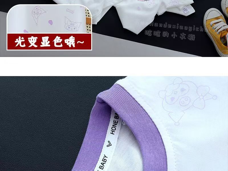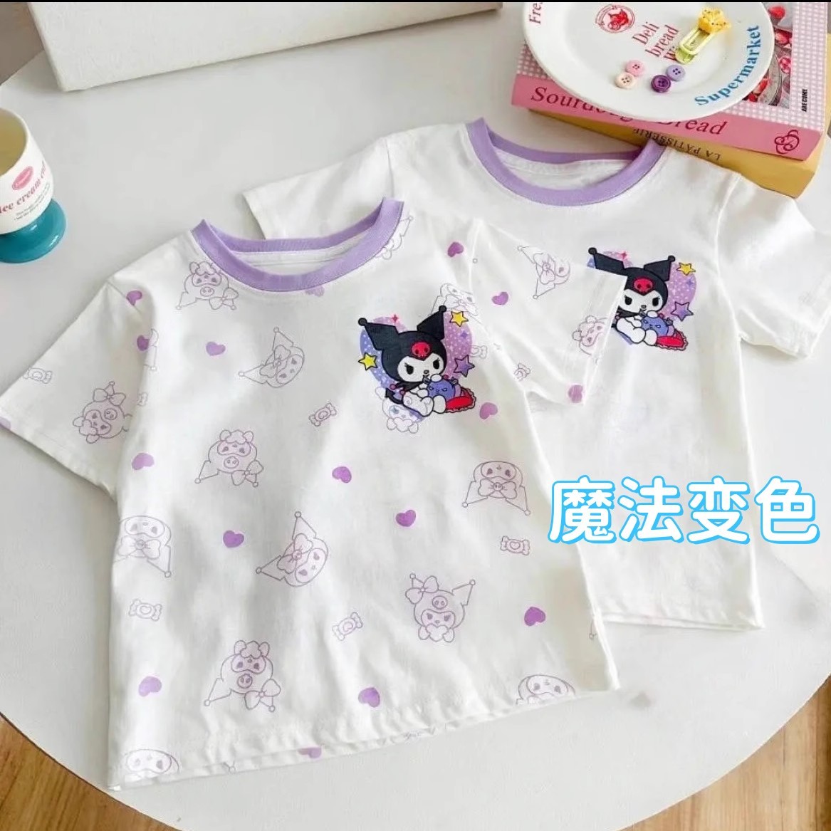자외선 변색 순면 여아 쿠로미 만화 반팔 2025 여름 상의 티셔츠 유아 및 어린이용스토어 가기