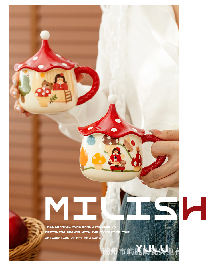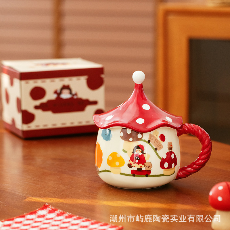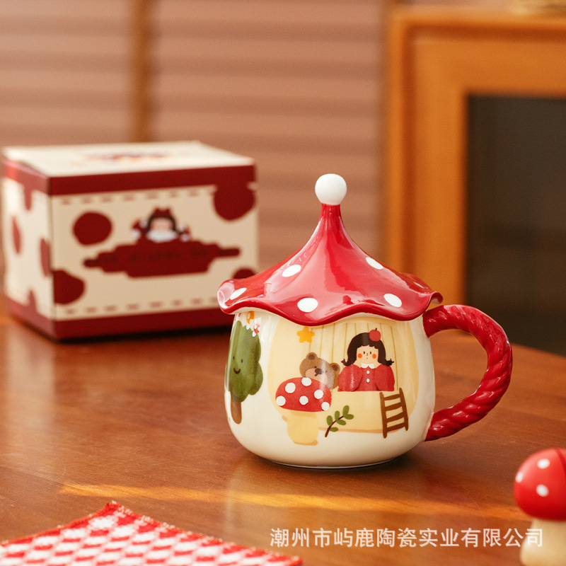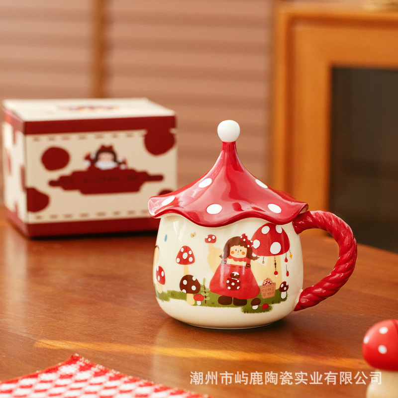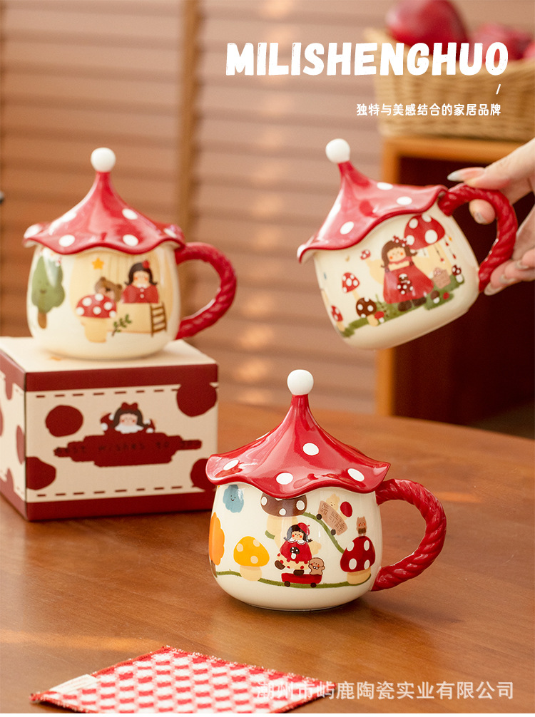 버섯 소녀 마술 컵 고급스러운 세라믹 머그잔 커피 컵 뚜껑이 달린 가정용 물컵 특별 생일 선물스토어 가기
