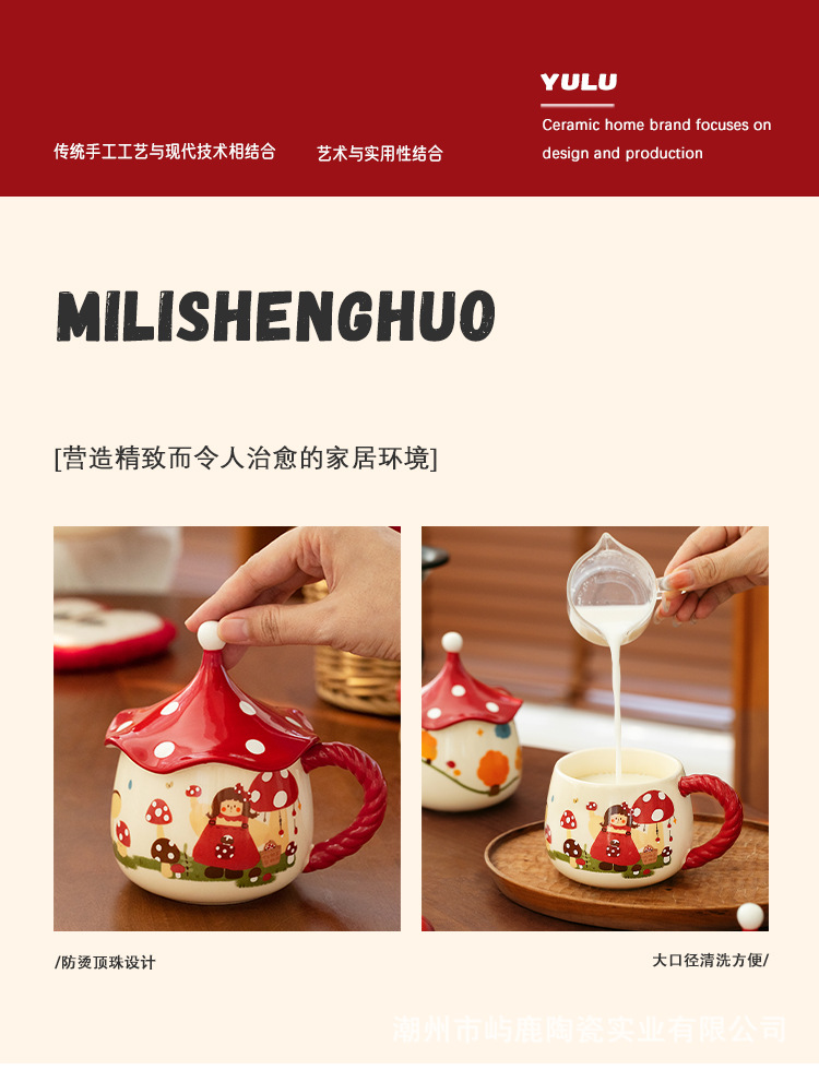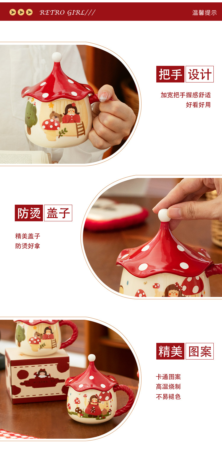 버섯 소녀 마술 컵 고급스러운 세라믹 머그잔 커피 컵 뚜껑이 달린 가정용 물컵 특별 생일 선물