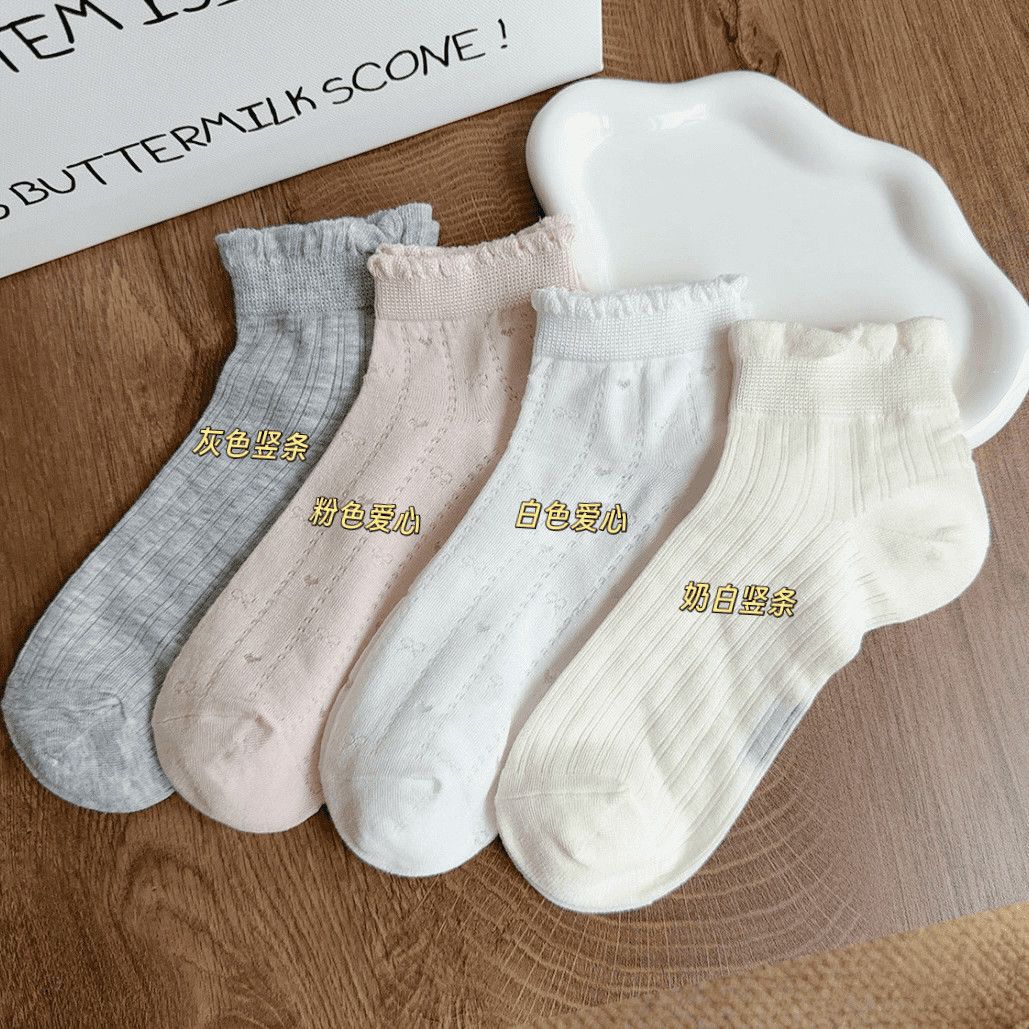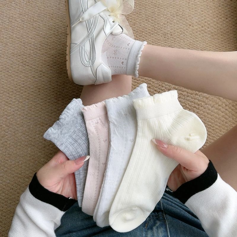 흰색 양말 봄과 여름 얇은 메쉬 통기성 양말 단색 레이스 보우 발레 스타일 종아리 양말 초박형스토어 가기
