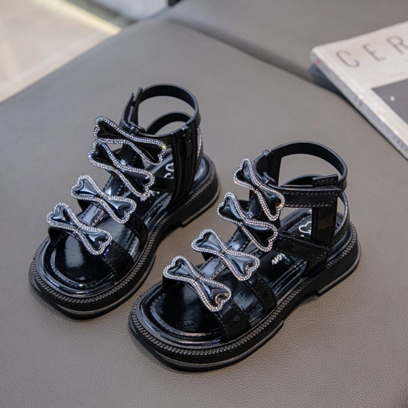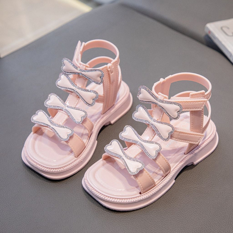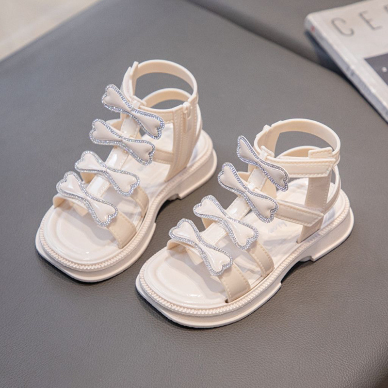 여름 새 여자 샌들 패션 다목적 공주 신발 미끄럼 방지 부드러운 바닥 라인 석 어린 소녀 샌들