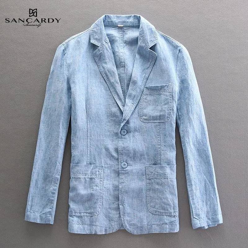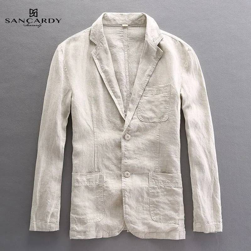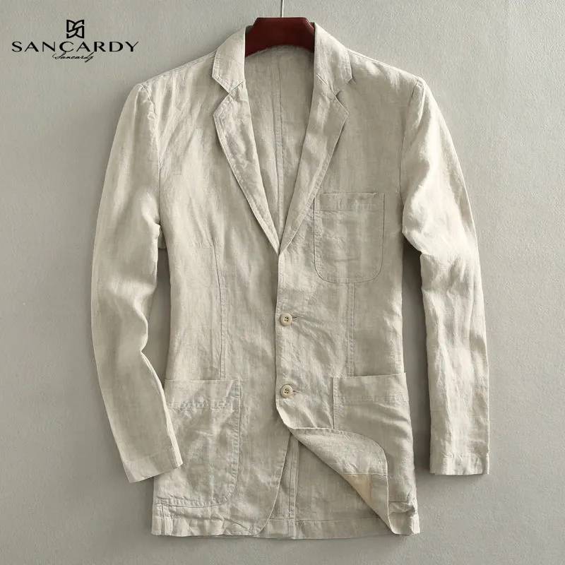 리넨 세트 남성 자켓 얇은 통기성 중국 스타일 캐주얼 남성 느슨한 단일 서양 선 스크린 세트스토어 가기