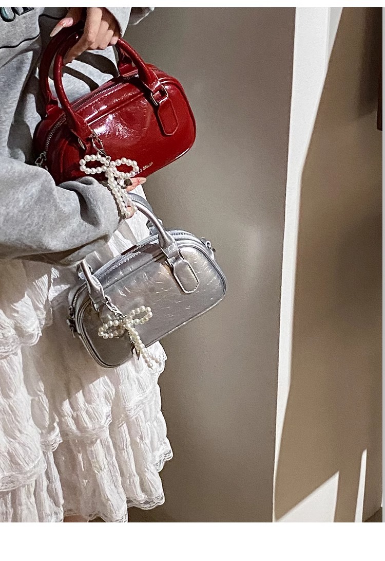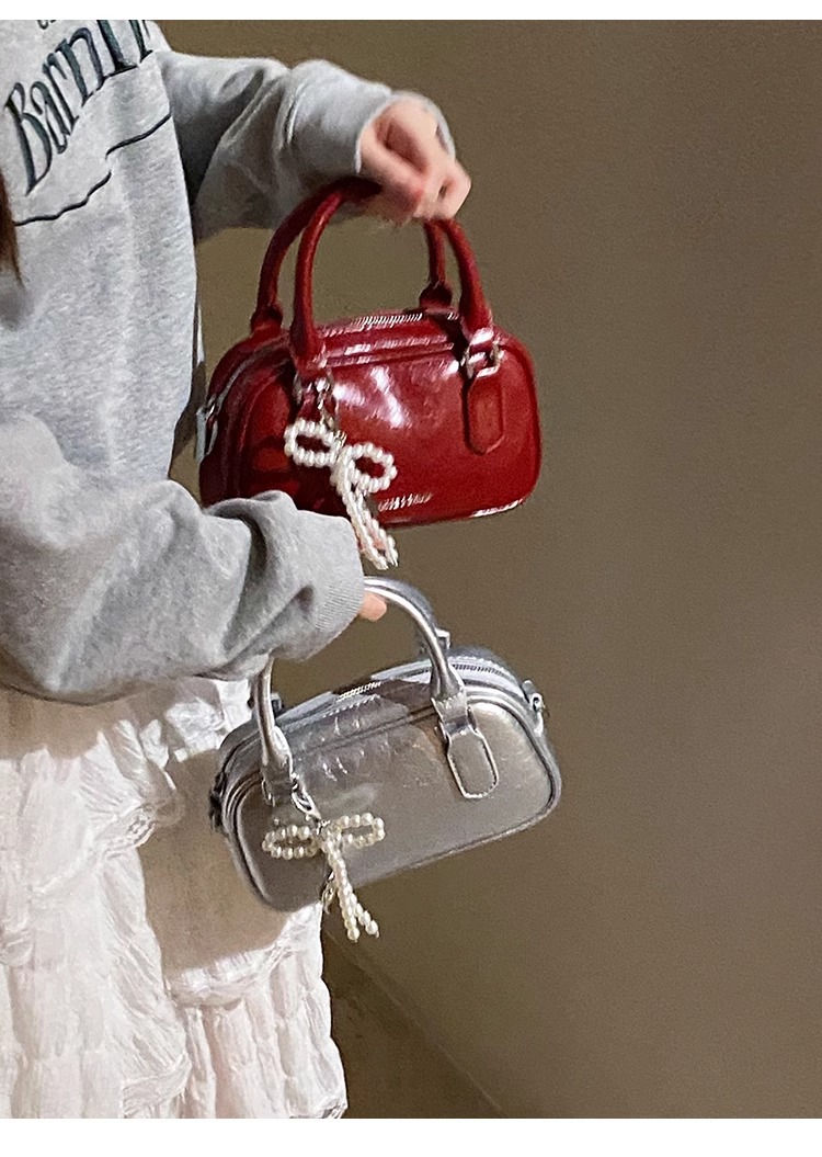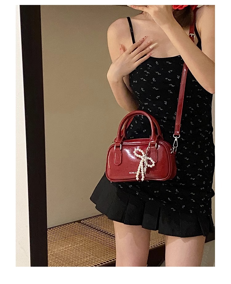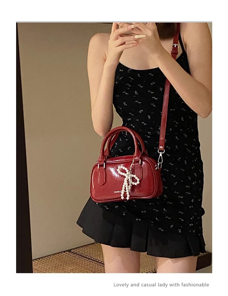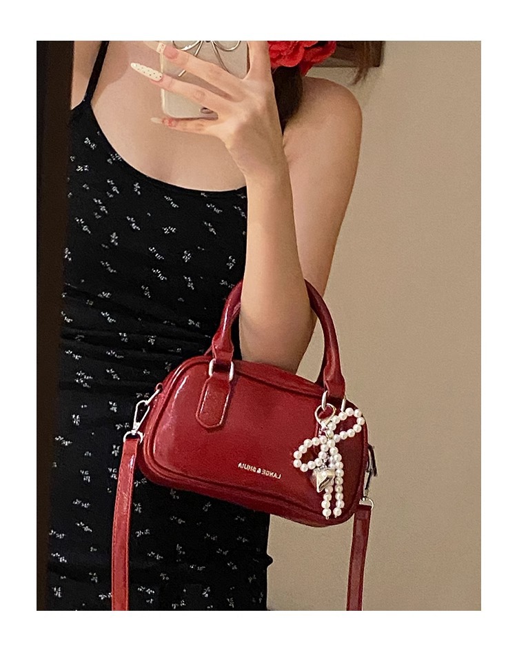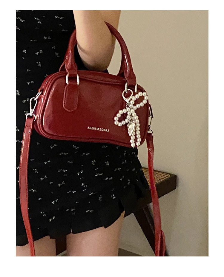 손을 들고 빨간 가방 여성의 새해 가방 2024 새로운 유행 한국 볼링 가방 모든 경기 크로스 바디 가방 작은 광장 가방스토어 가기