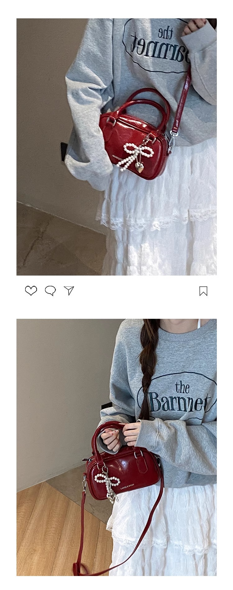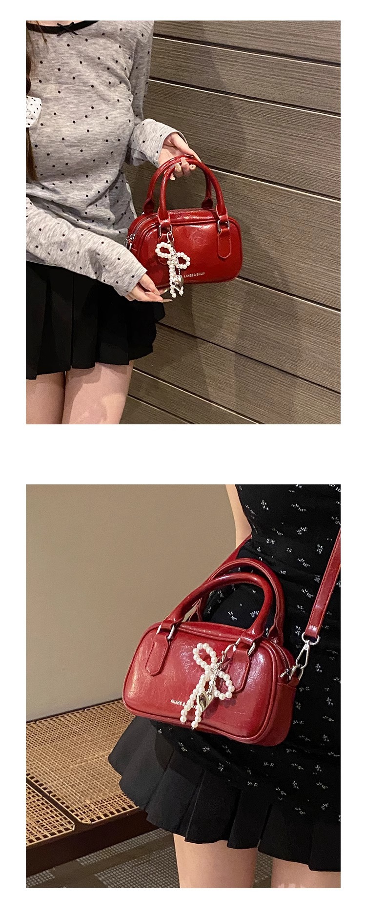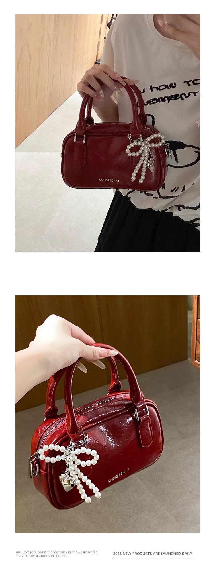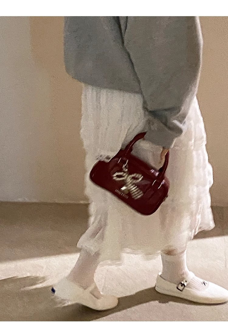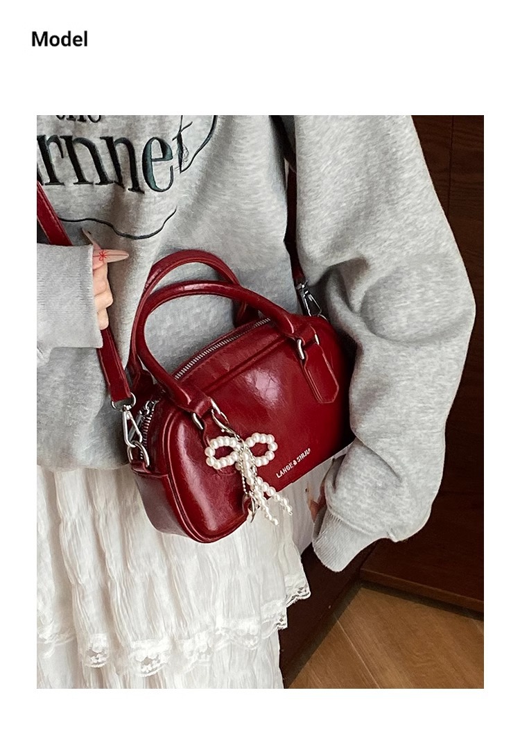 손을 들고 빨간 가방 여성의 새해 가방 2024 새로운 유행 한국 볼링 가방 모든 경기 크로스 바디 가방 작은 광장 가방스토어 가기
