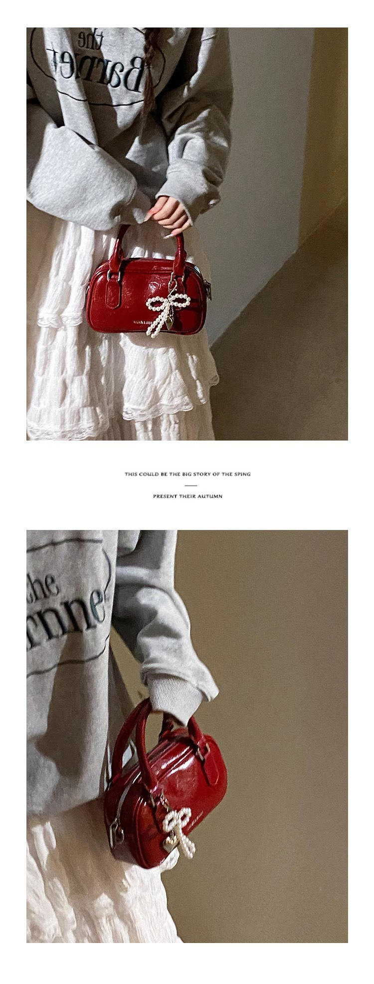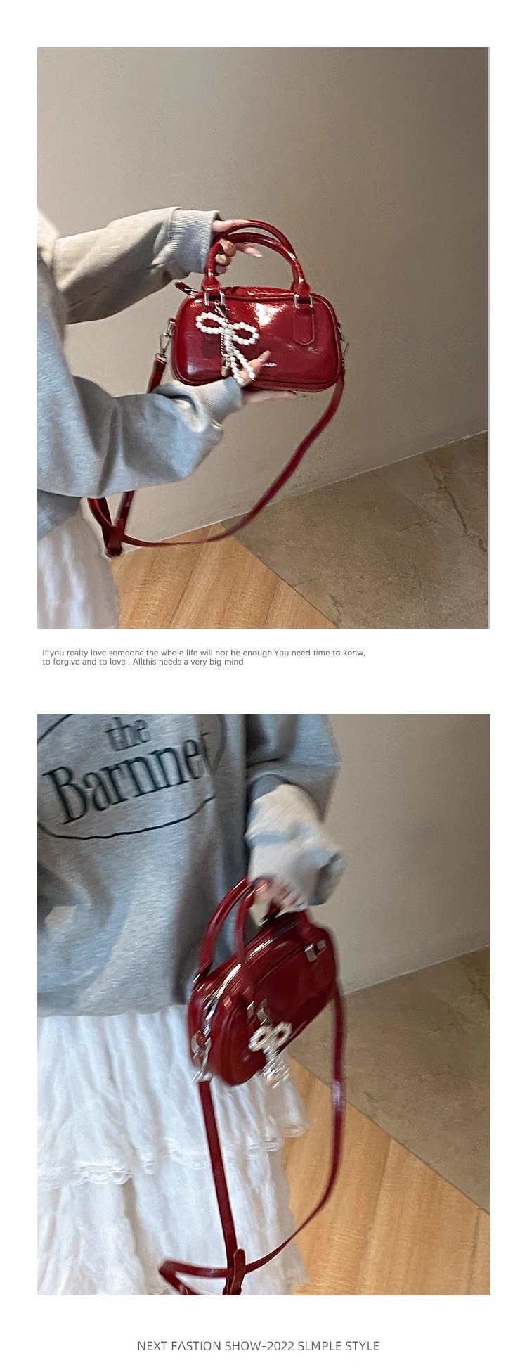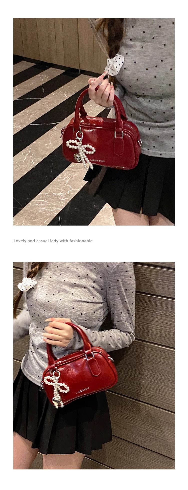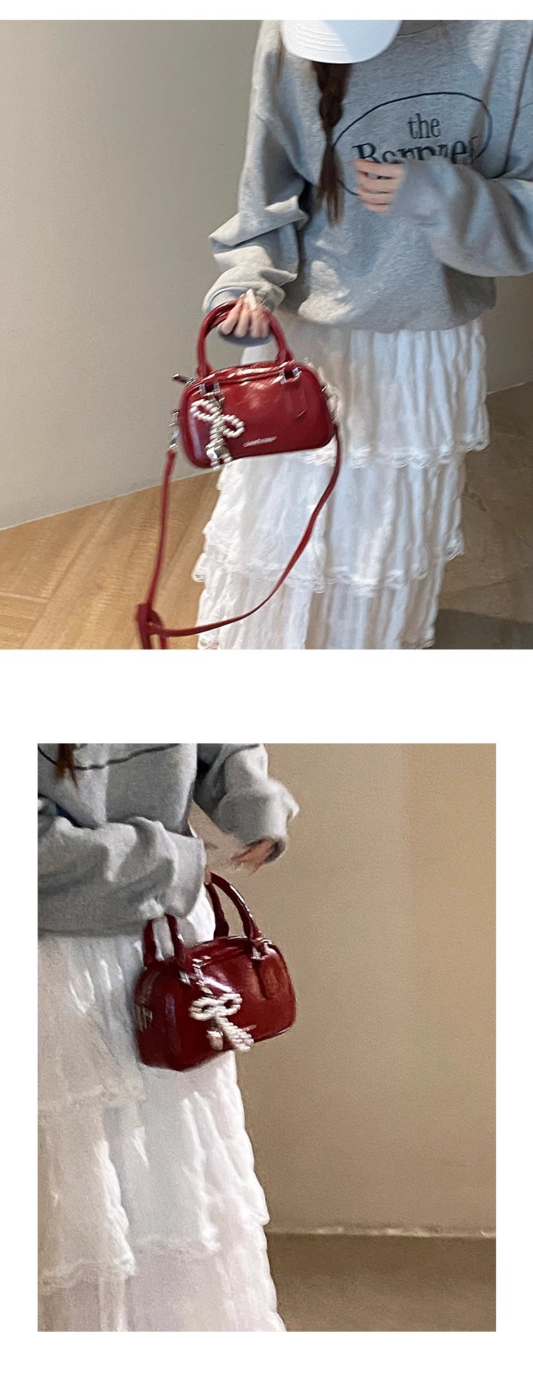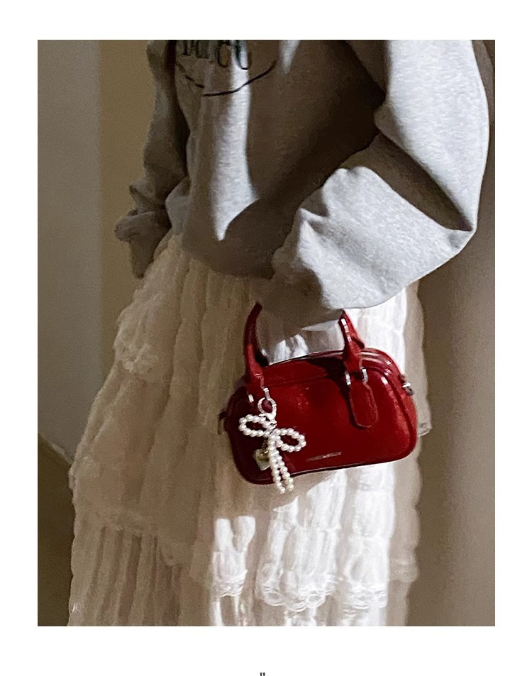 손을 들고 빨간 가방 여성의 새해 가방 2024 새로운 유행 한국 볼링 가방 모든 경기 크로스 바디 가방 작은 광장 가방