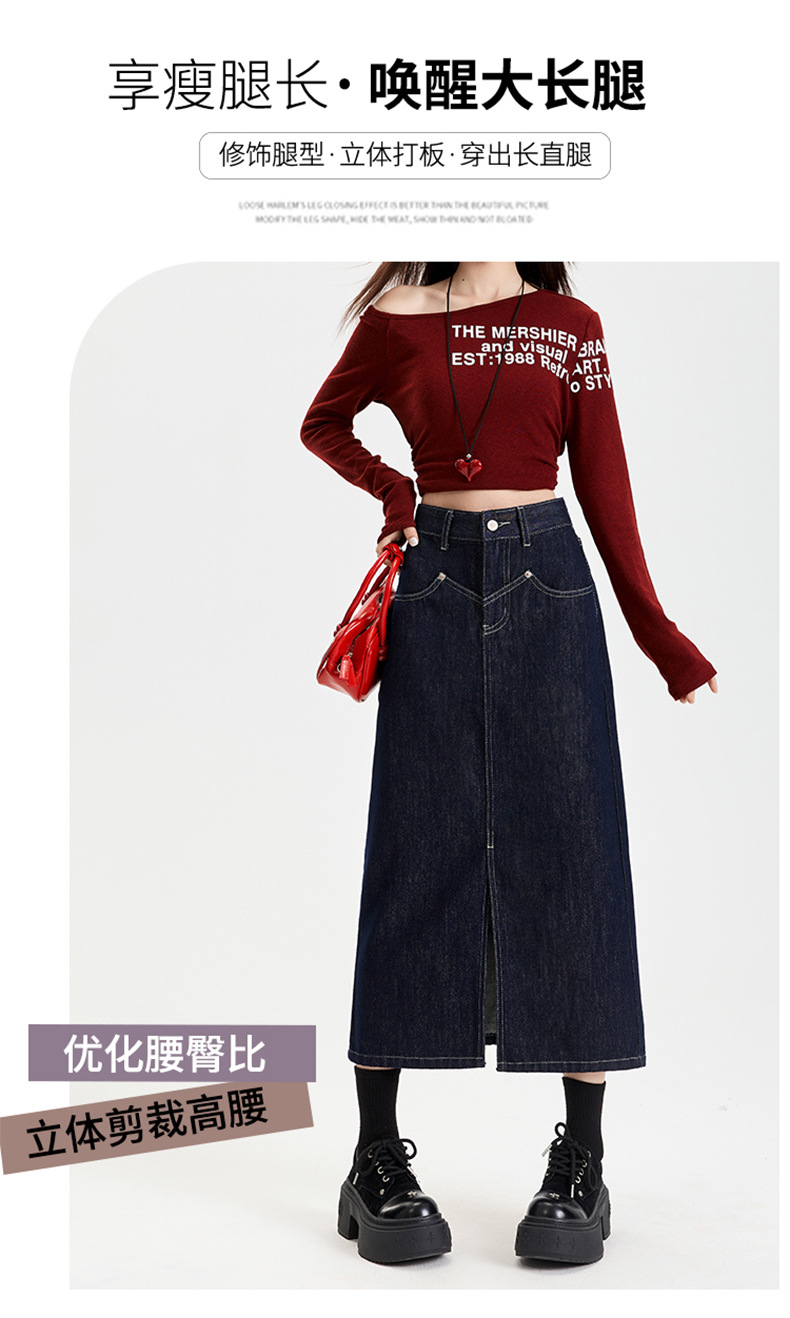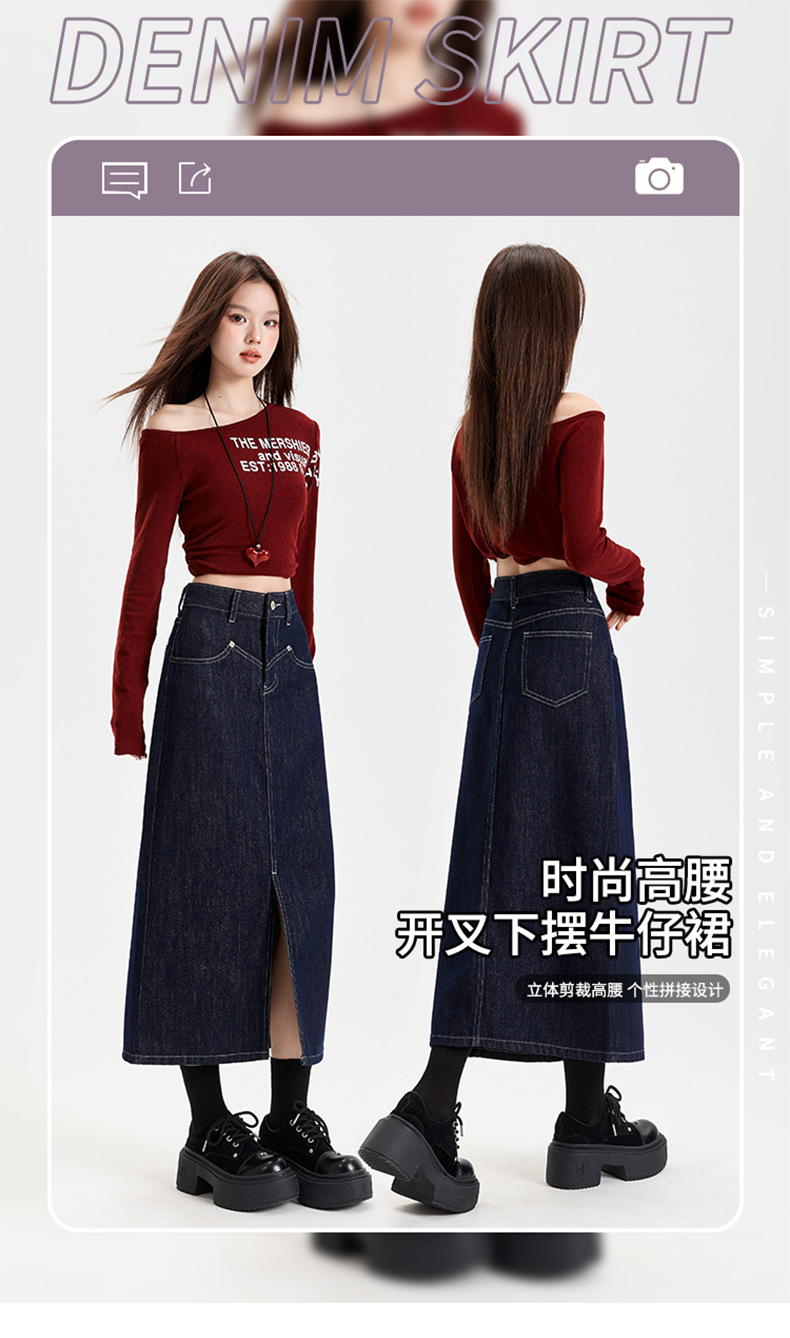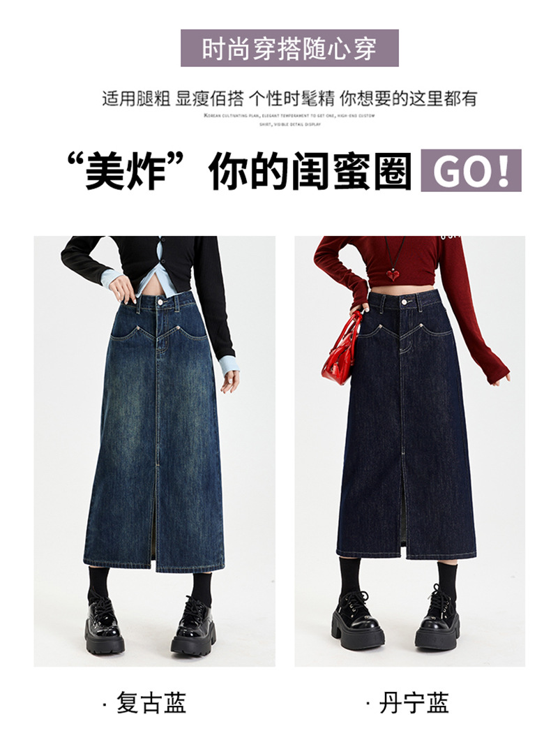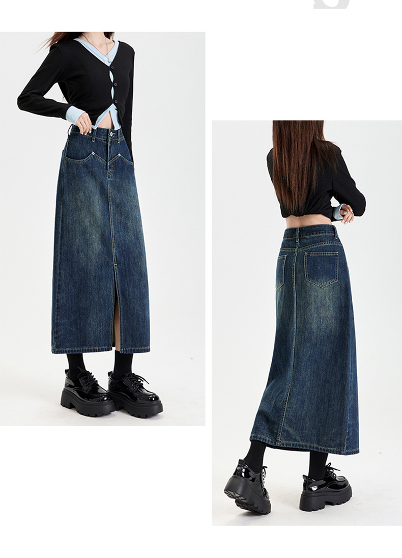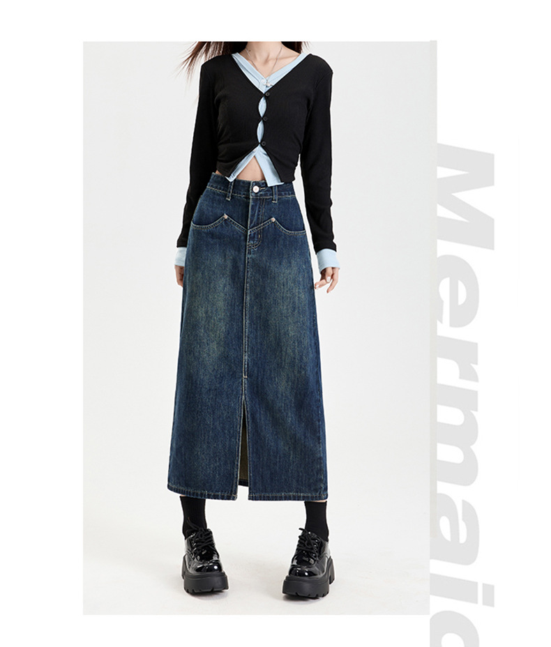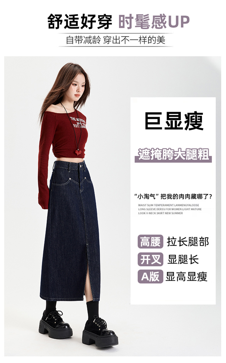여성용 데님 블루 하이 웨이스트 데님 스커트 2025 봄, 가을 새로운 스타일 슬릿 중간 길이 슬리밍 힙 스커트 스판덱스스토어 가기