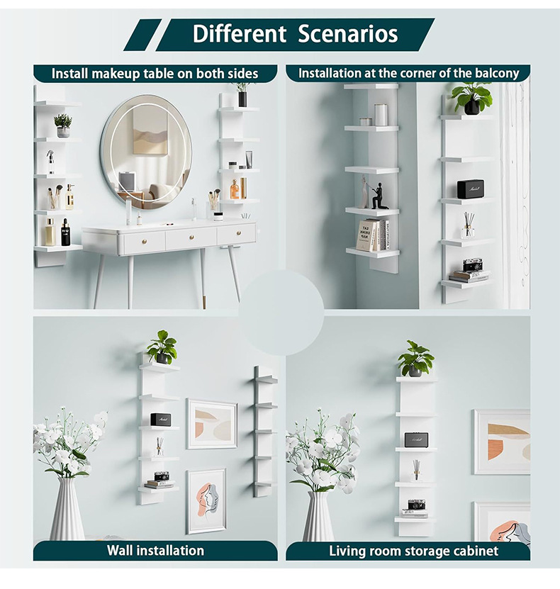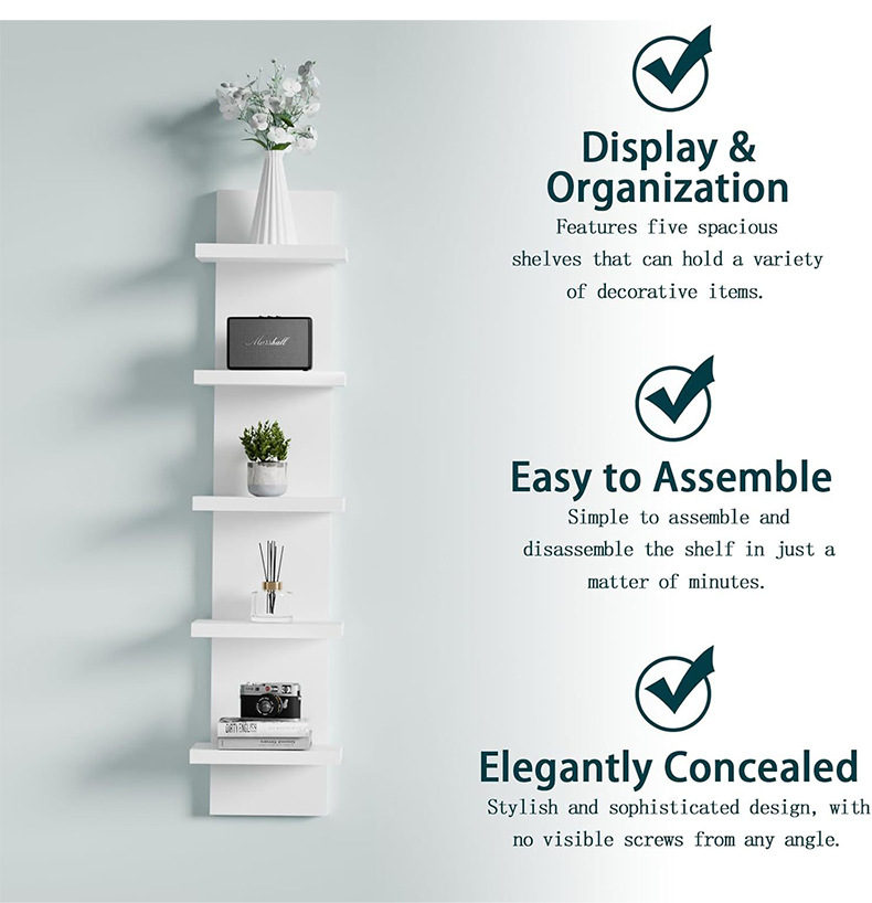 • 흰색 플로팅 선반 5단 [두께 10MM]