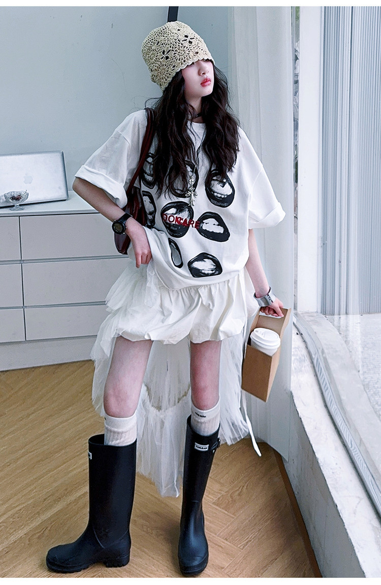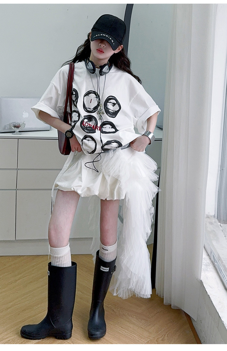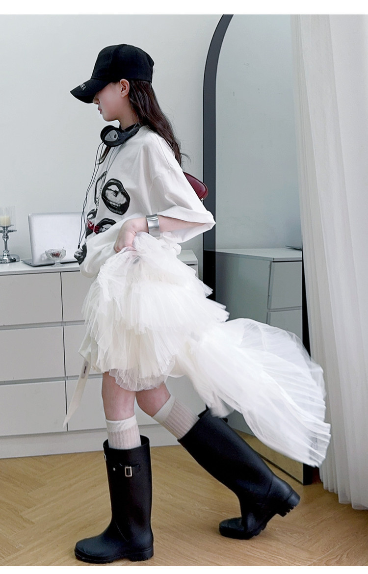 걸스 하이 스트리트 스타일, 플로럴 번 스커트 반바디 레이어드 베일 스커트 3 종 세트 중 · 대형 어린이를위한 패션스토어 가기