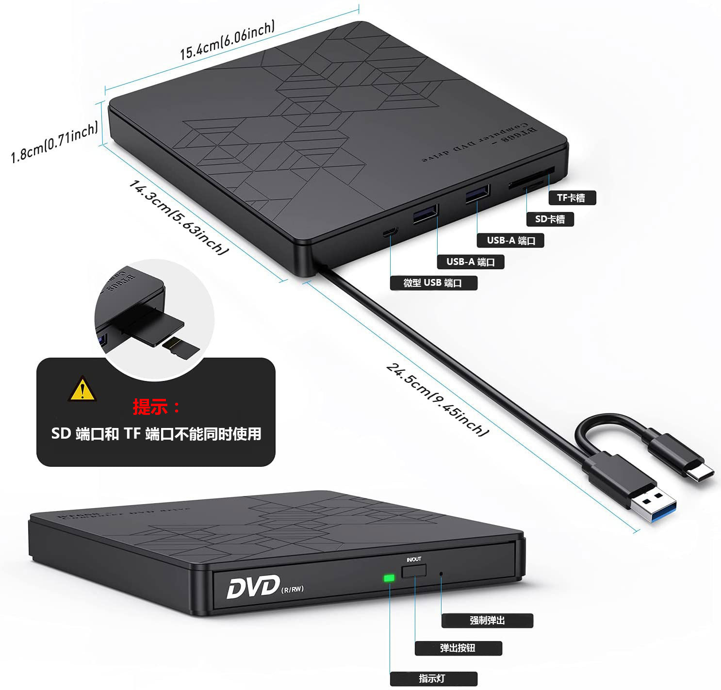 다기능 DVD 버너 Type-C USB3.0 듀얼 인터페이스 읽기 가능 TF_SD 컴퓨터 범용 외부 광학 드라이브