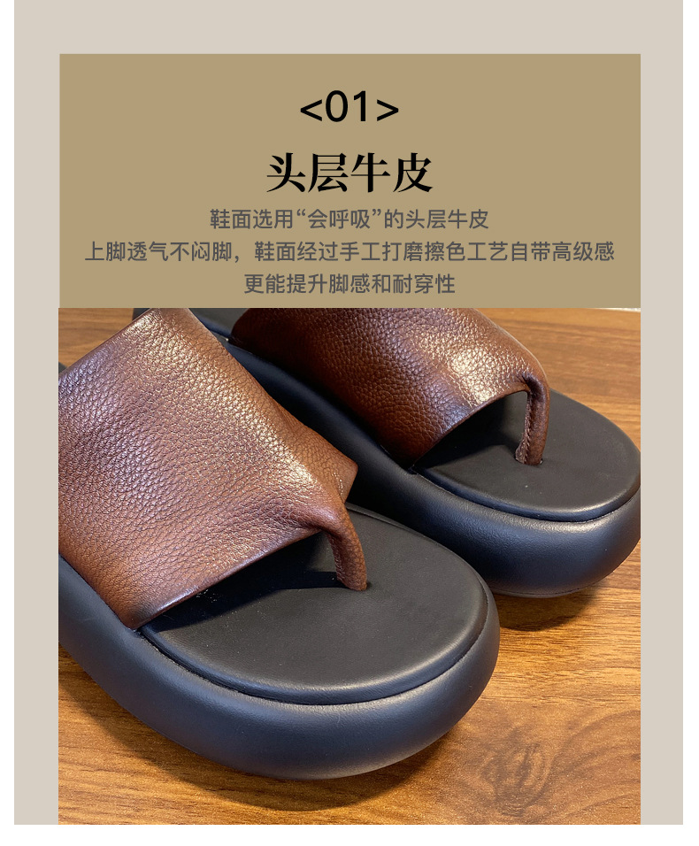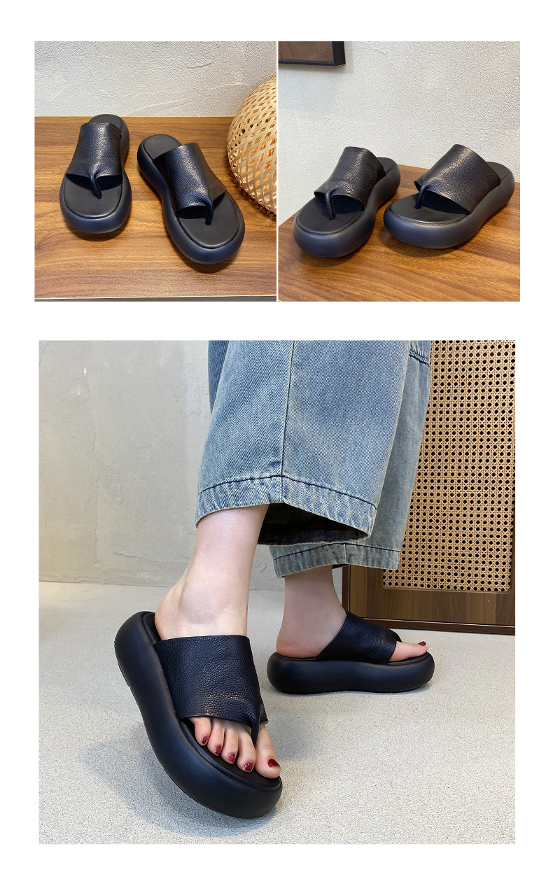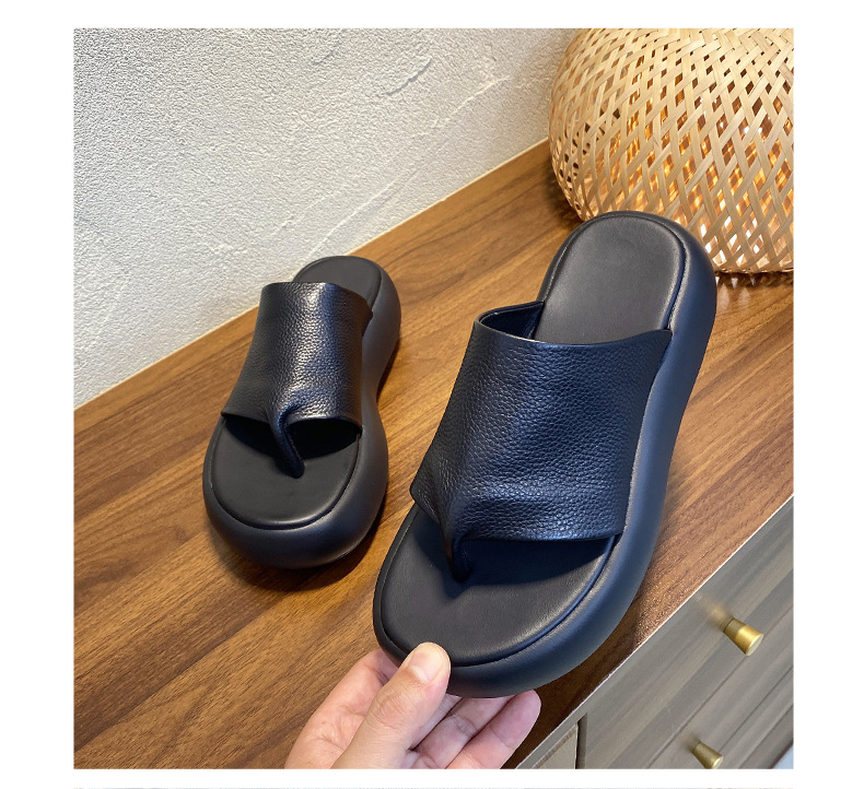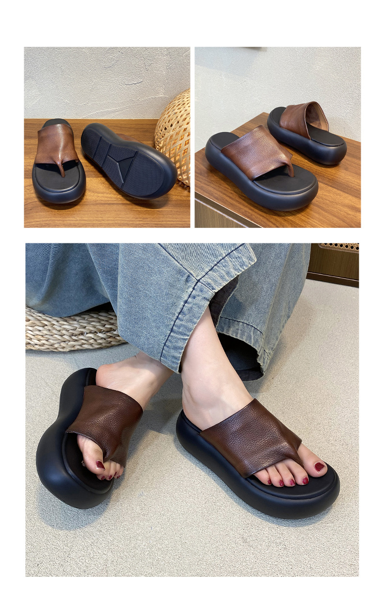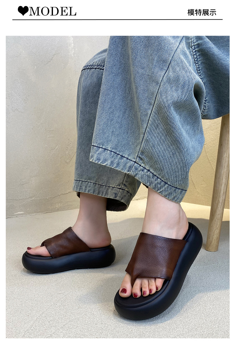 탑 레이어 Cowhide 경량 두꺼운 밑창 아우터 플립 플롭 여성 2025 년 여름 새 발가락 클리핑 여성용 샌들 및 슬리퍼 정품 가죽