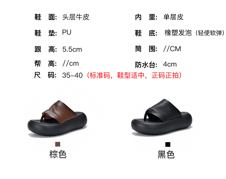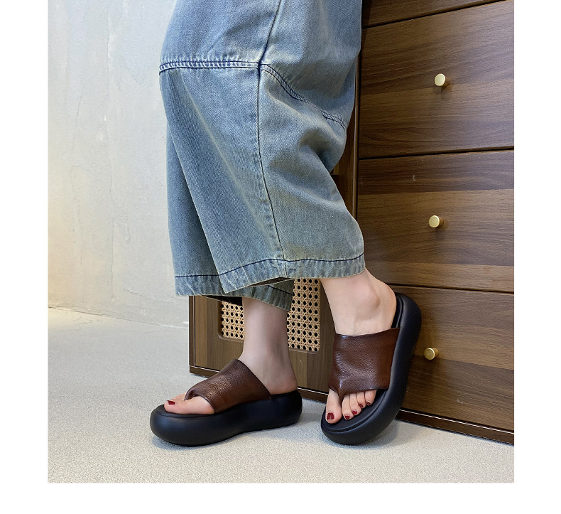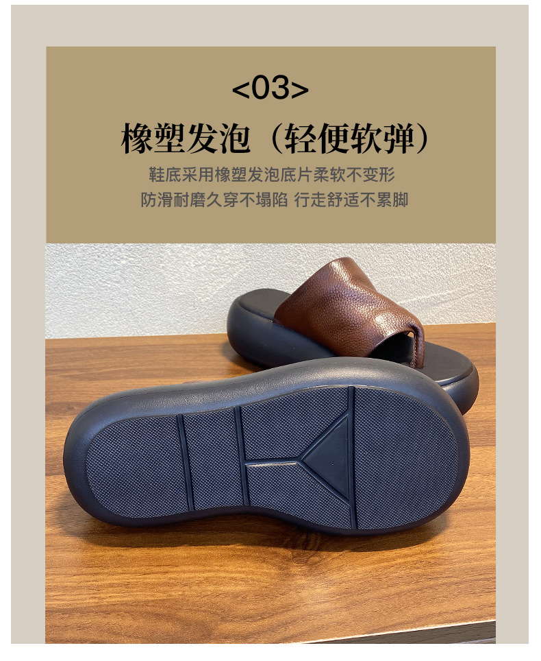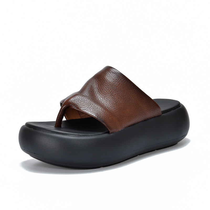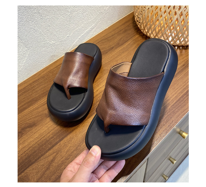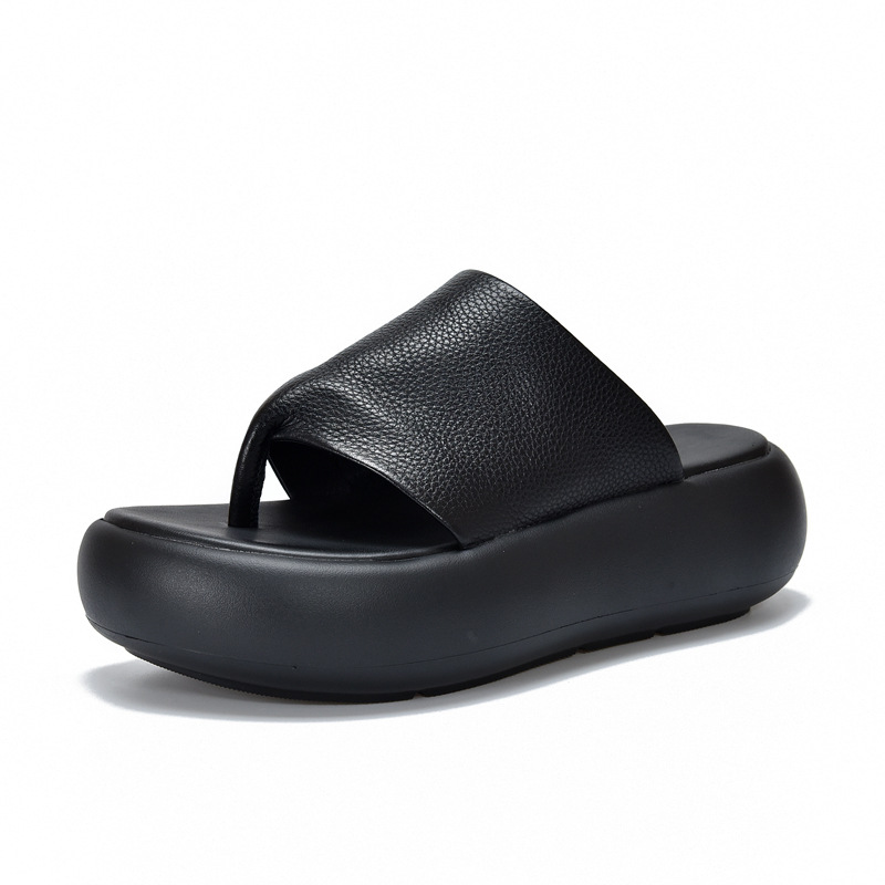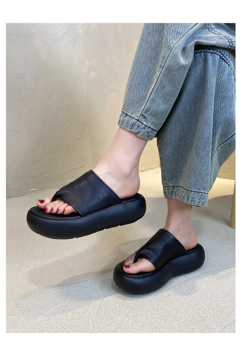 탑 레이어 Cowhide 경량 두꺼운 밑창 아우터 플립 플롭 여성 2025 년 여름 새 발가락 클리핑 여성용 샌들 및 슬리퍼 정품 가죽