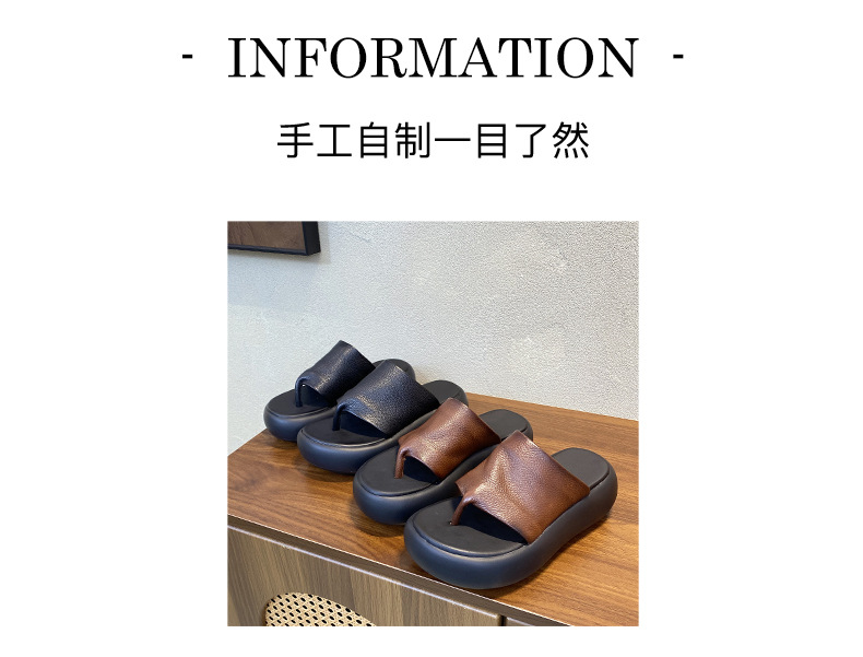 탑 레이어 Cowhide 경량 두꺼운 밑창 아우터 플립 플롭 여성 2025 년 여름 새 발가락 클리핑 여성용 샌들 및 슬리퍼 정품 가죽스토어 가기