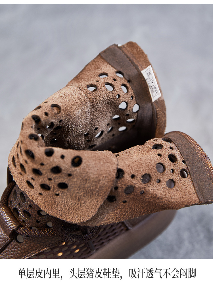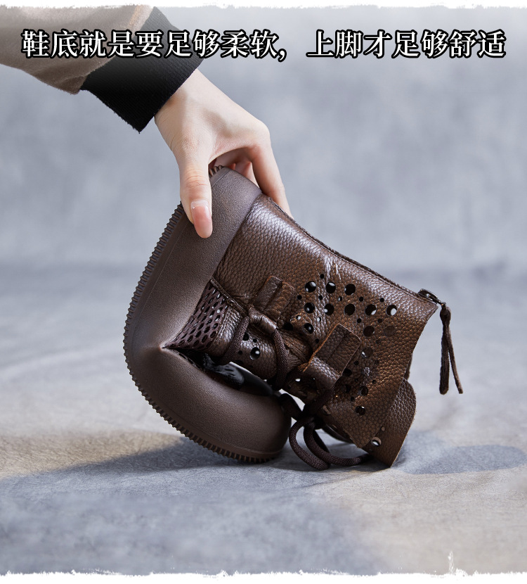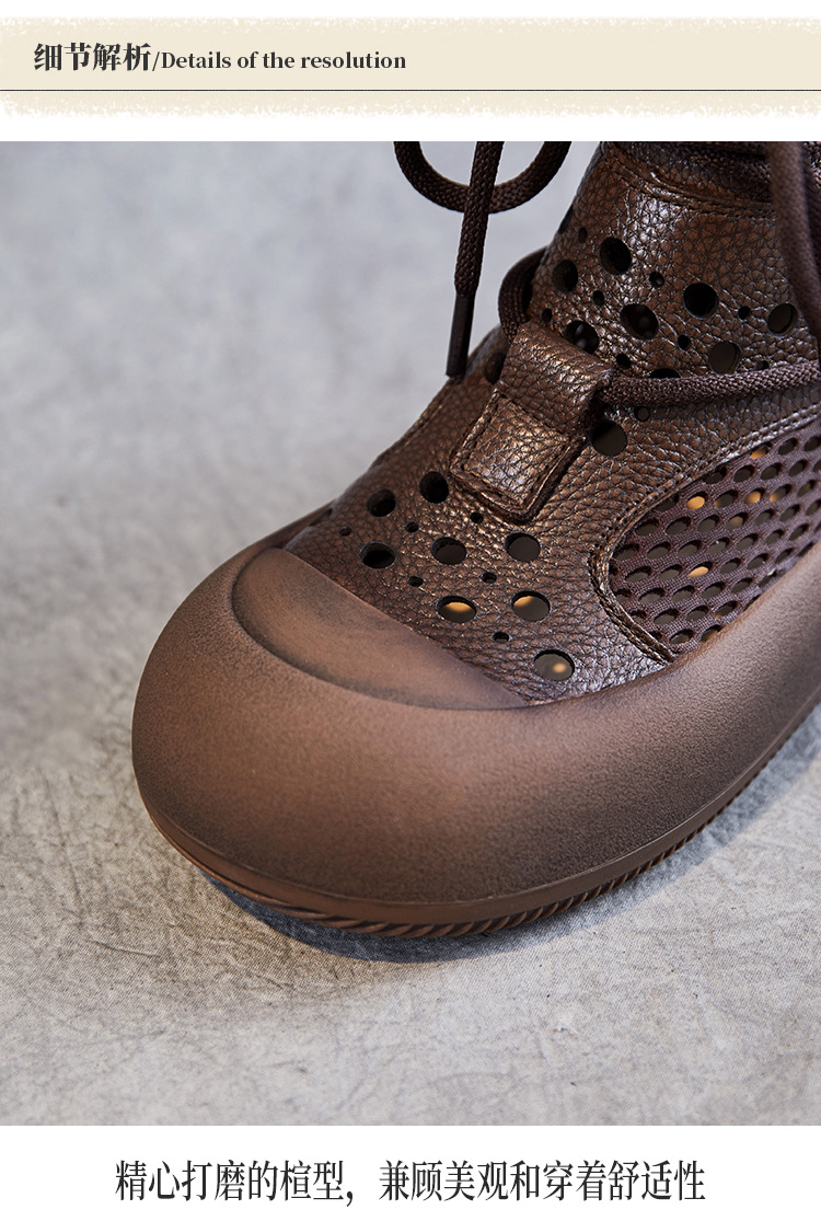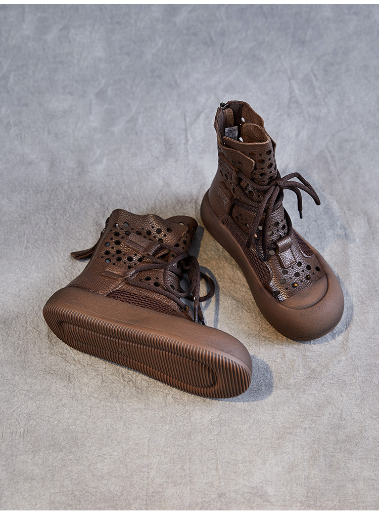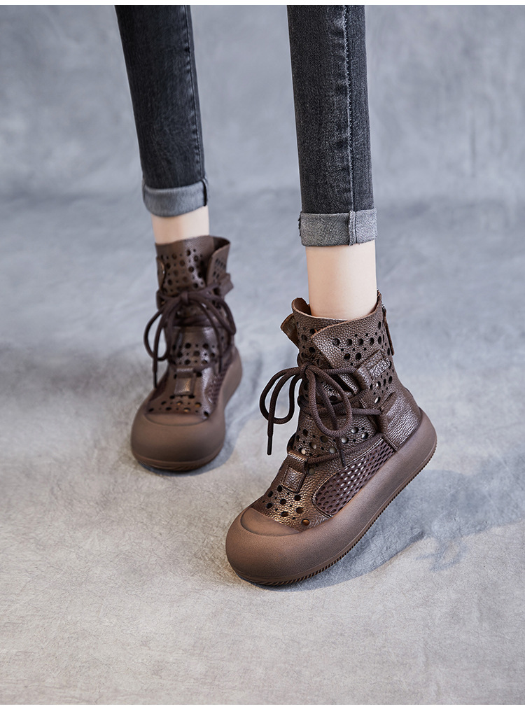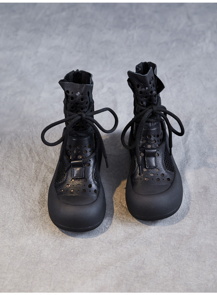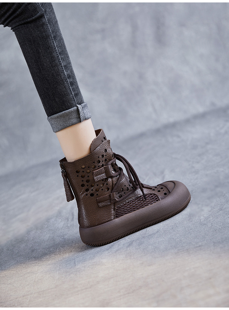 정품 가죽 중공 마틴 부츠 여성 2025 년 새로운 여름 얇은 통기성 메쉬 샌들 외부가 여름을위한 하이 탑 발목 부츠