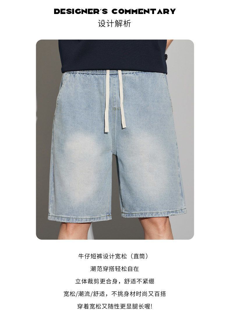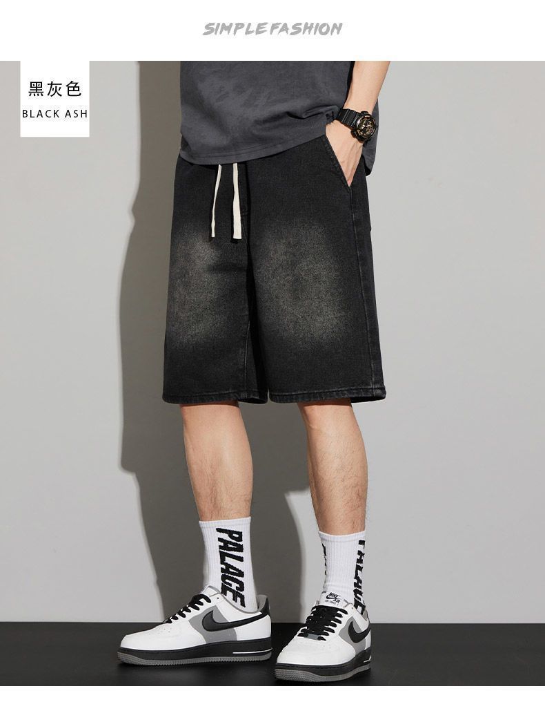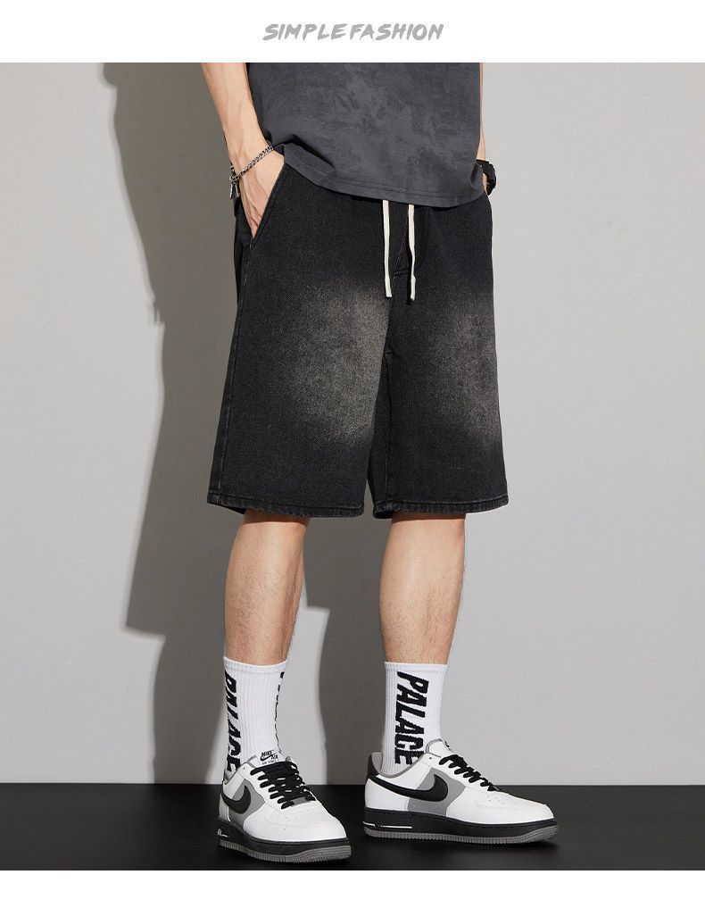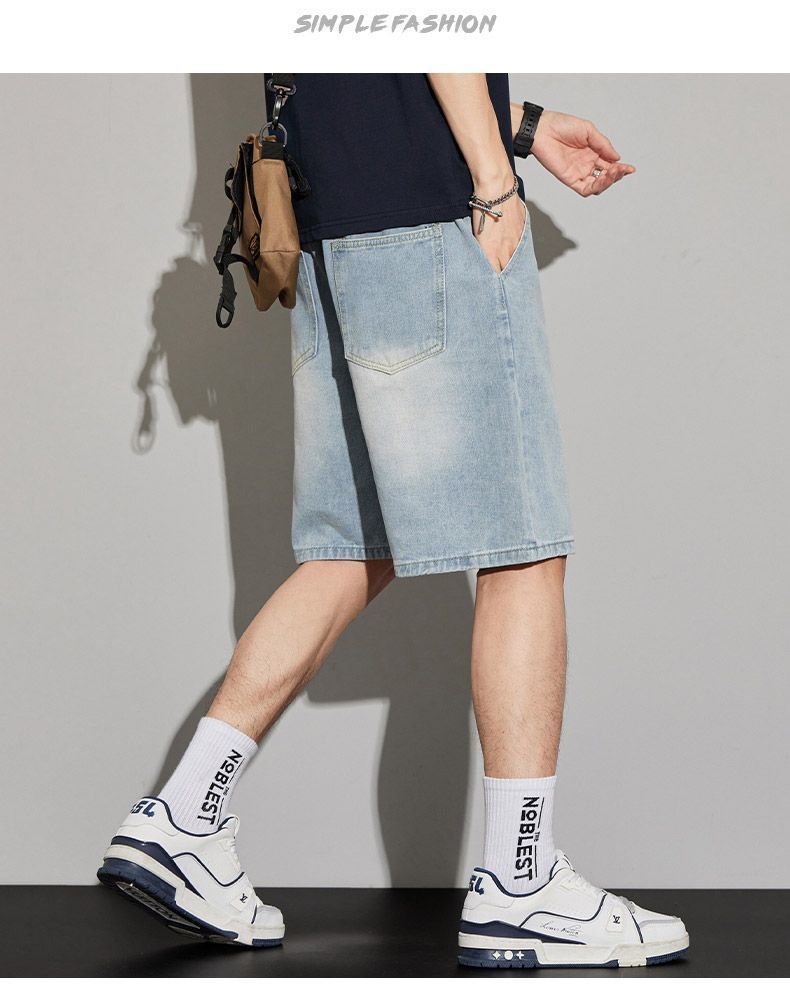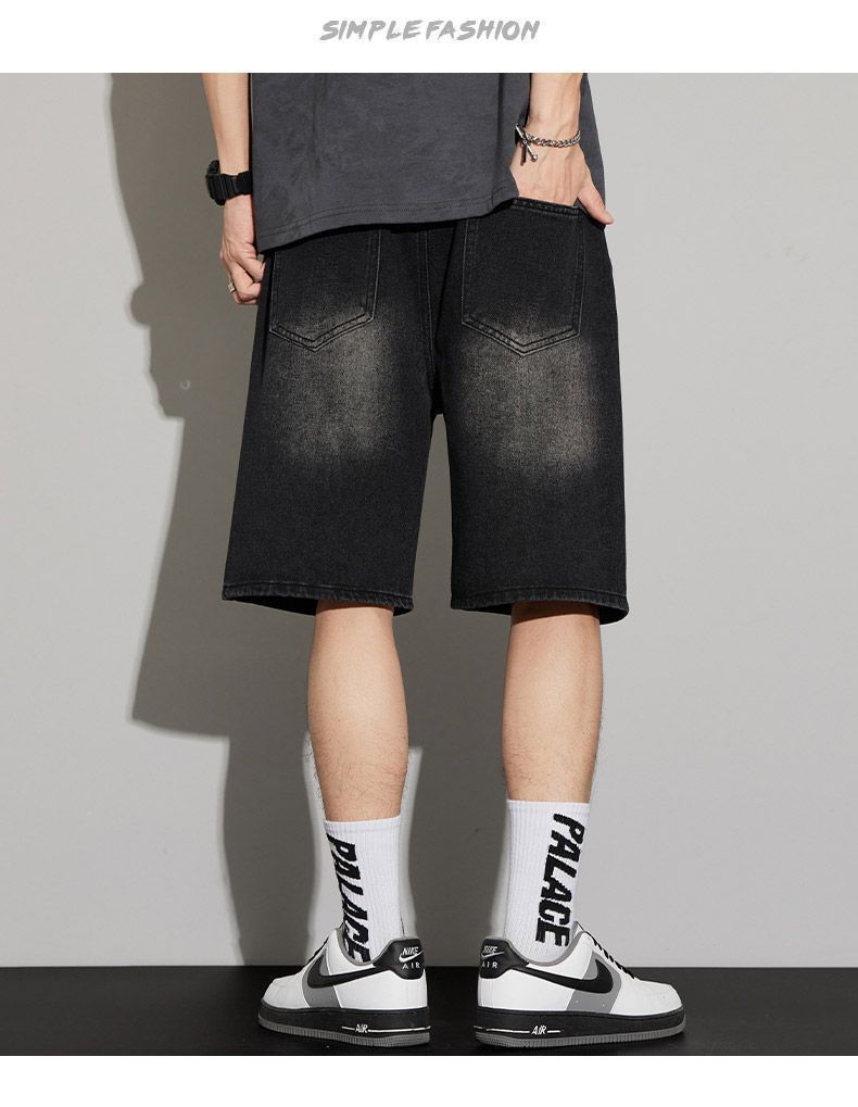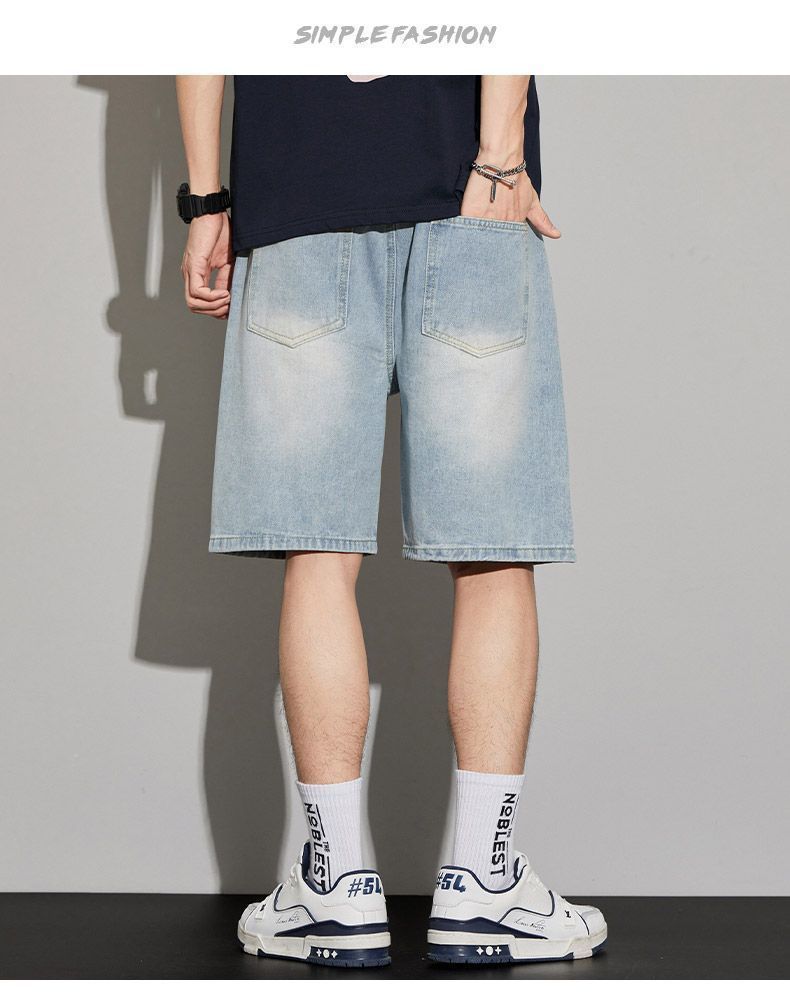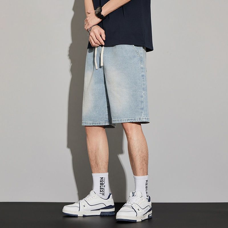 아메리칸 레트로 트렌디 브랜드 남성용 데님 반바지, 여름 트렌디, 루즈하고 활용도가 높은 스트레이트 캐주얼 와이드 레그 5부 팬츠 아우터스토어 가기