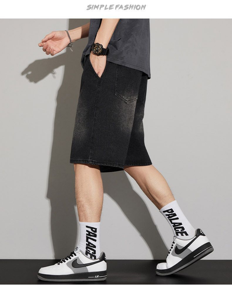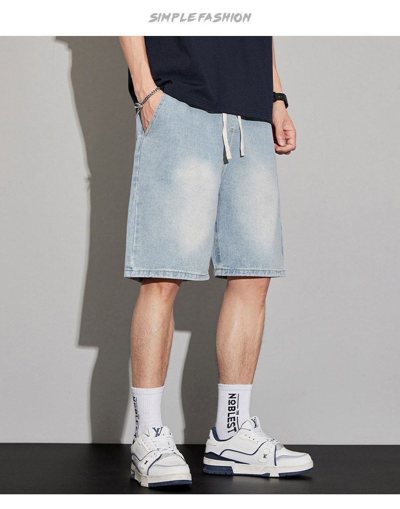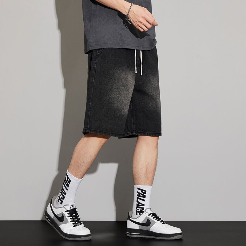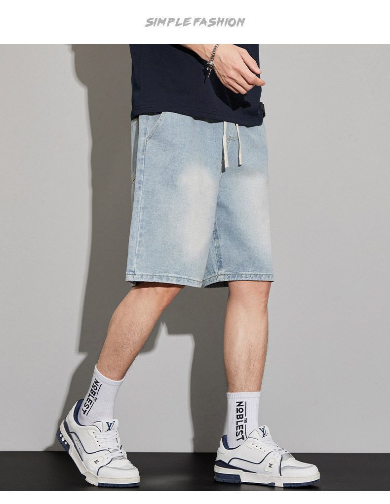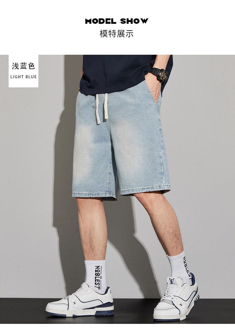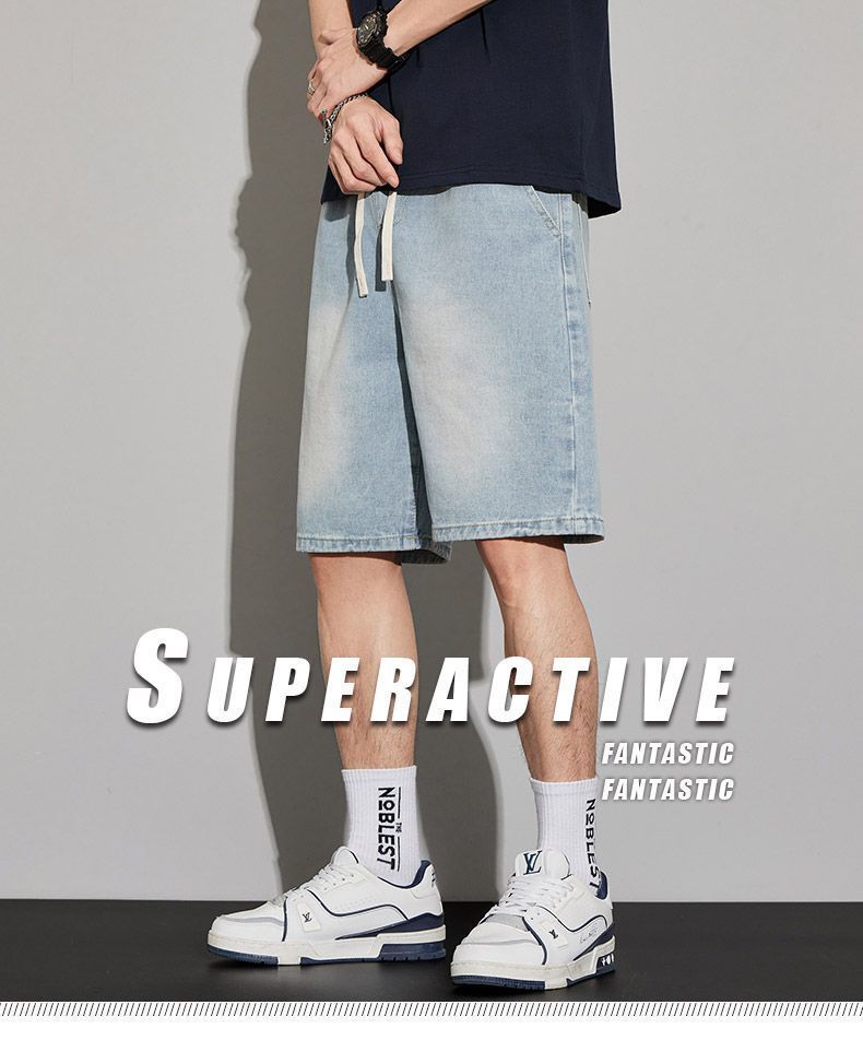 아메리칸 레트로 트렌디 브랜드 남성용 데님 반바지, 여름 트렌디, 루즈하고 활용도가 높은 스트레이트 캐주얼 와이드 레그 5부 팬츠 아우터스토어 가기