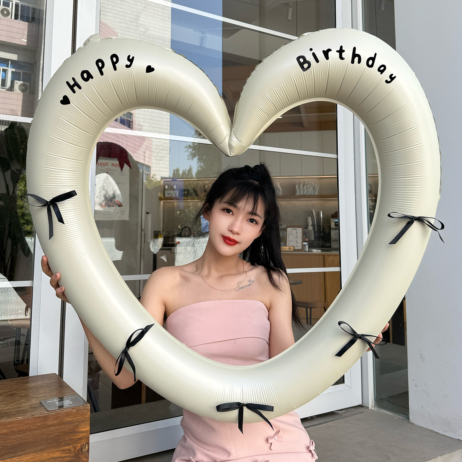 • 크림 컬러 할로우 러브 풍선 40inch개 (스티커 + 리본)