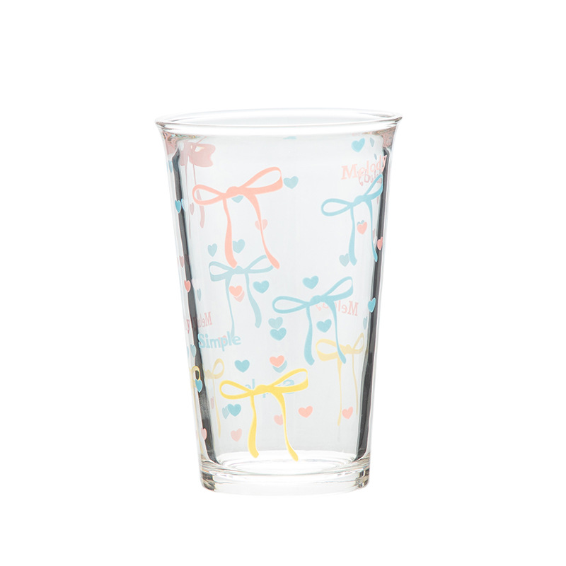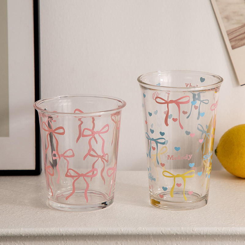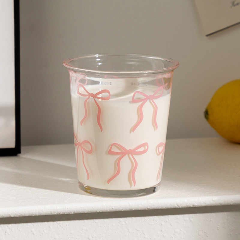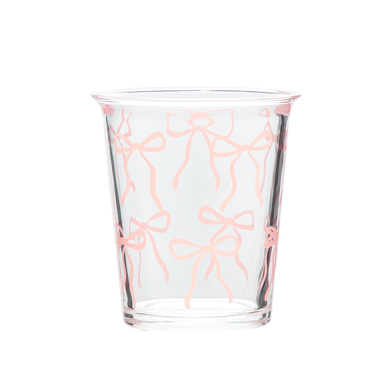 단일 무료 배송 유리 컵 핑크 활 인쇄 투명 유리 컵 우유 컵 로고스토어 가기
