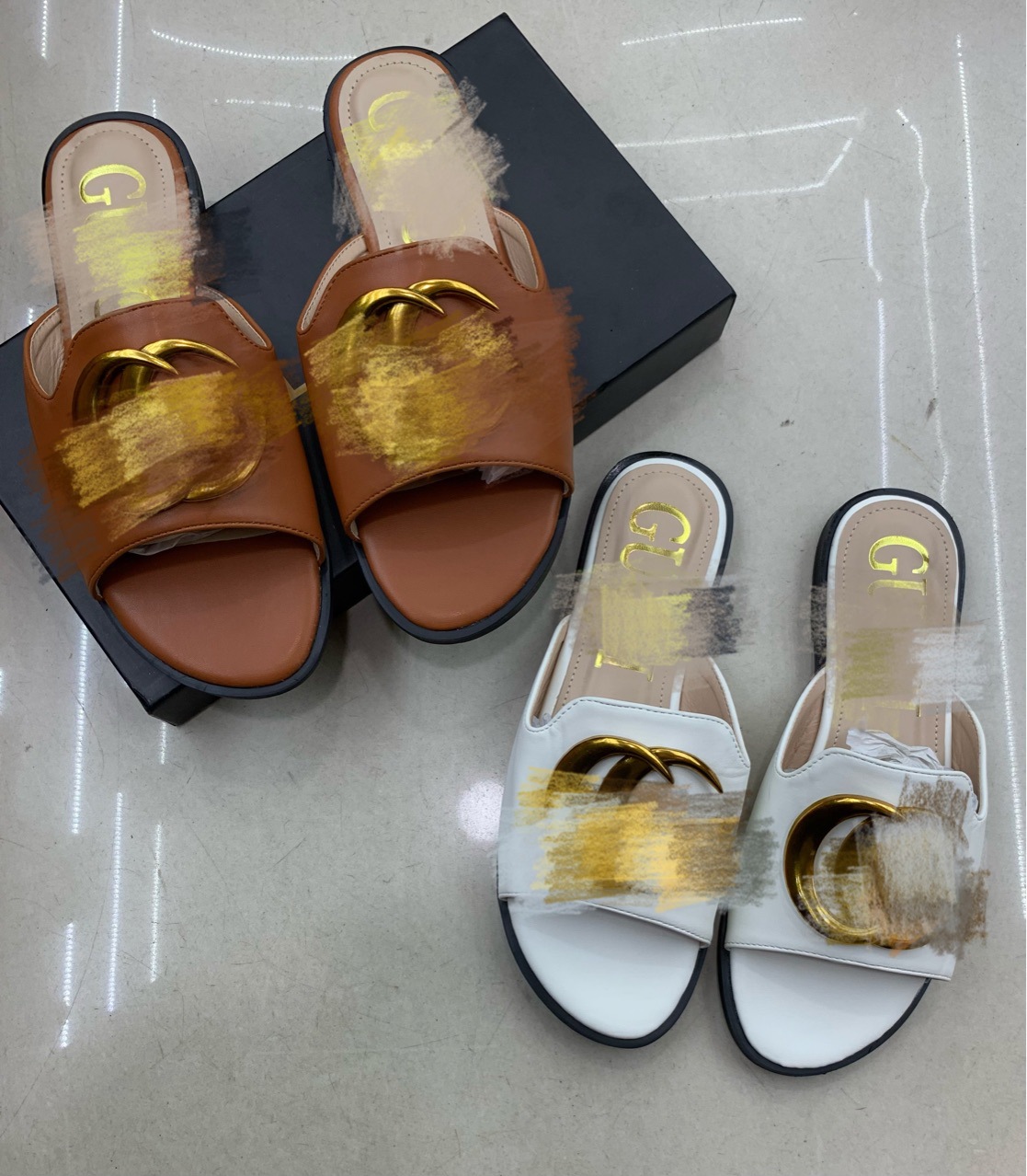 아프리카 수출용 G 브랜드 여성용 메탈 버클 슬리퍼, 레터링 플랫 슬리퍼, 해외 전용스토어 가기