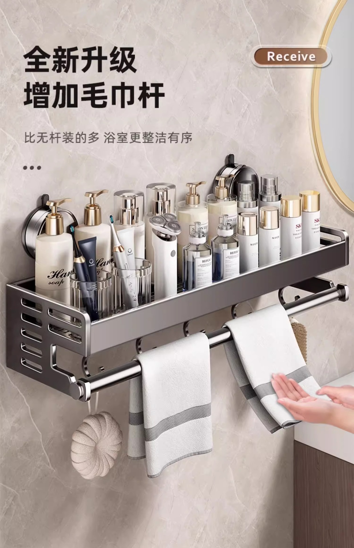 석션 형 화장실 랙 욕실 타월 랙 펀치가없는 화장실 세면대 벽걸이 형 벽걸이 형 보관 선반