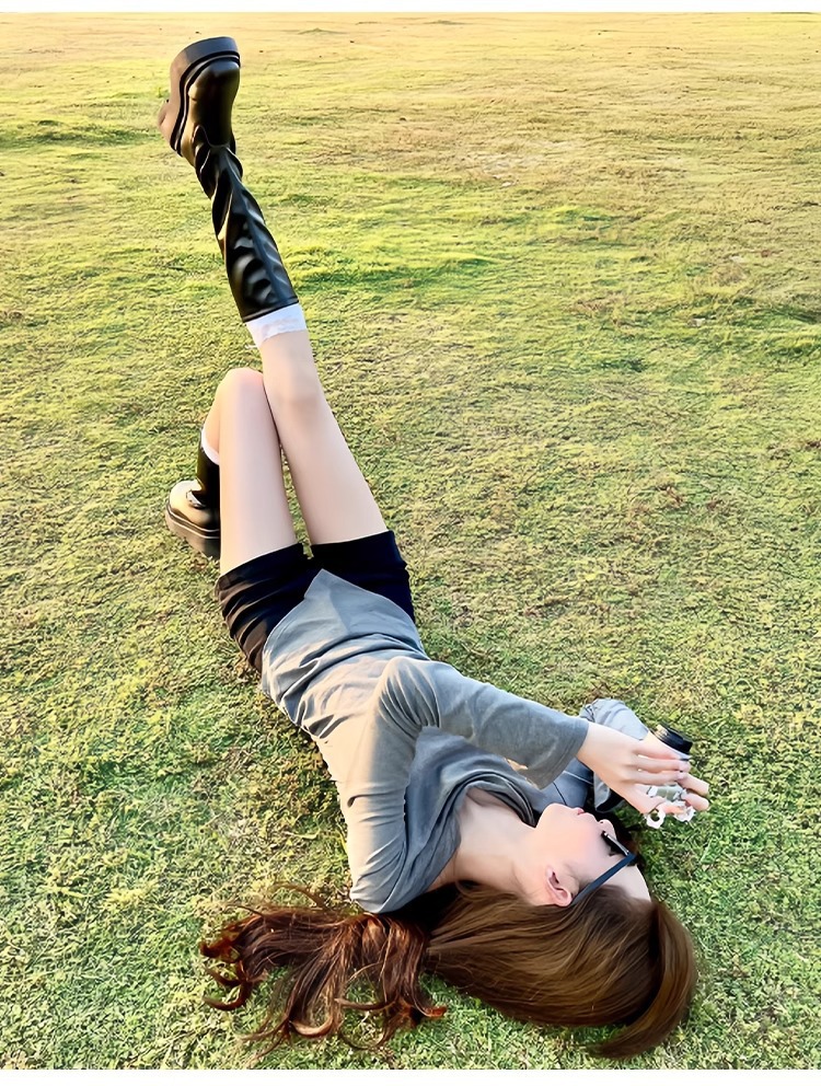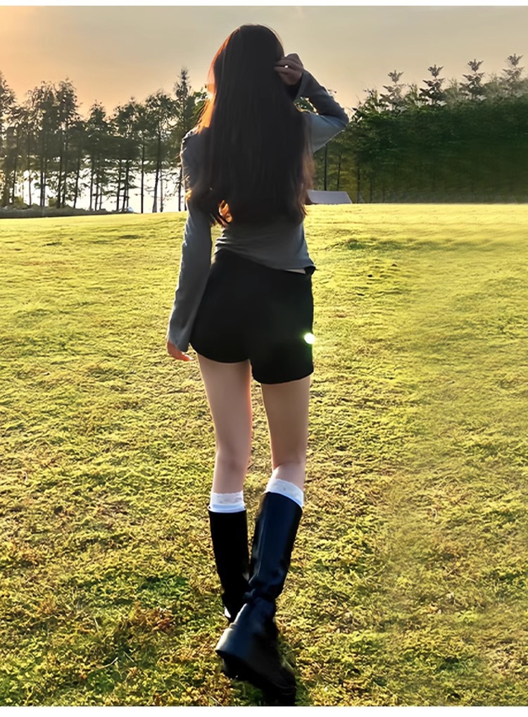 봄 여름 여성용 여름 아우터 블랙 반바지와 부츠 2025 새로운 스타일의 작은 A 라인 슬리밍 핫 소녀 레깅스스토어 가기