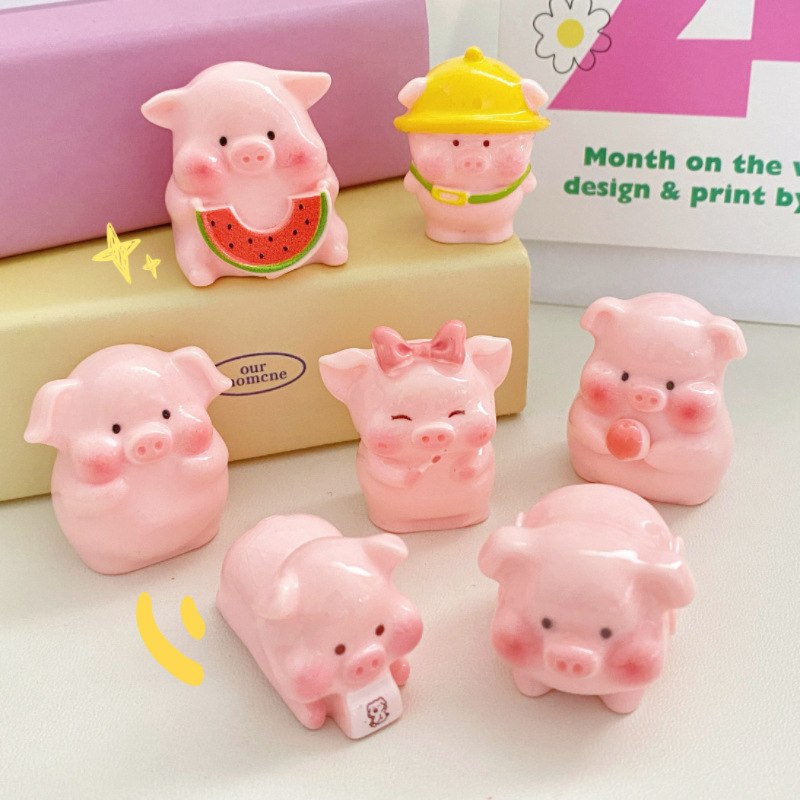만화 돼지 동물 장식품 컴퓨터 데스크탑 레진 자동차 장식품 DIY 수제 크림 글루 선물 귀여운 장식품