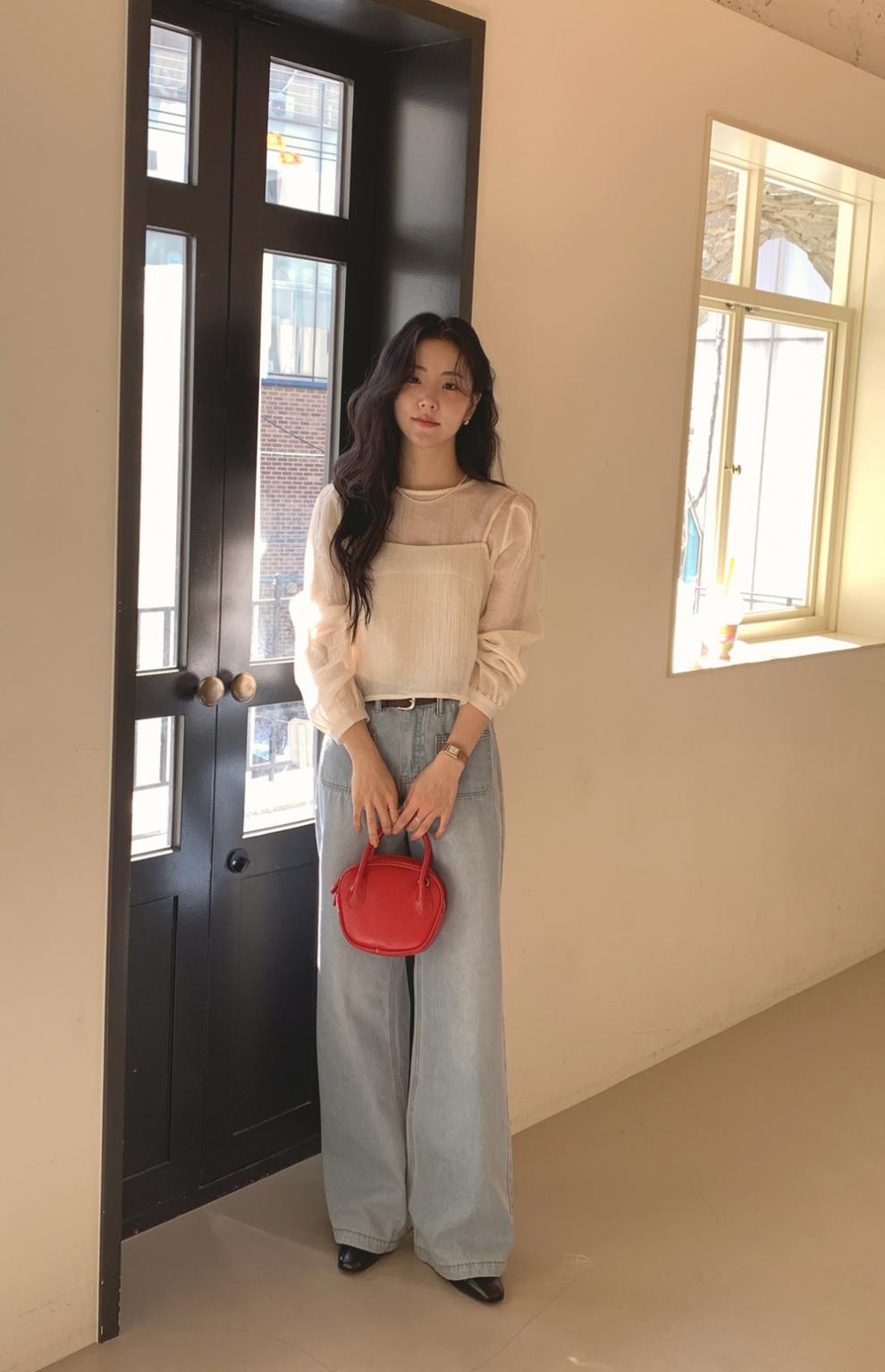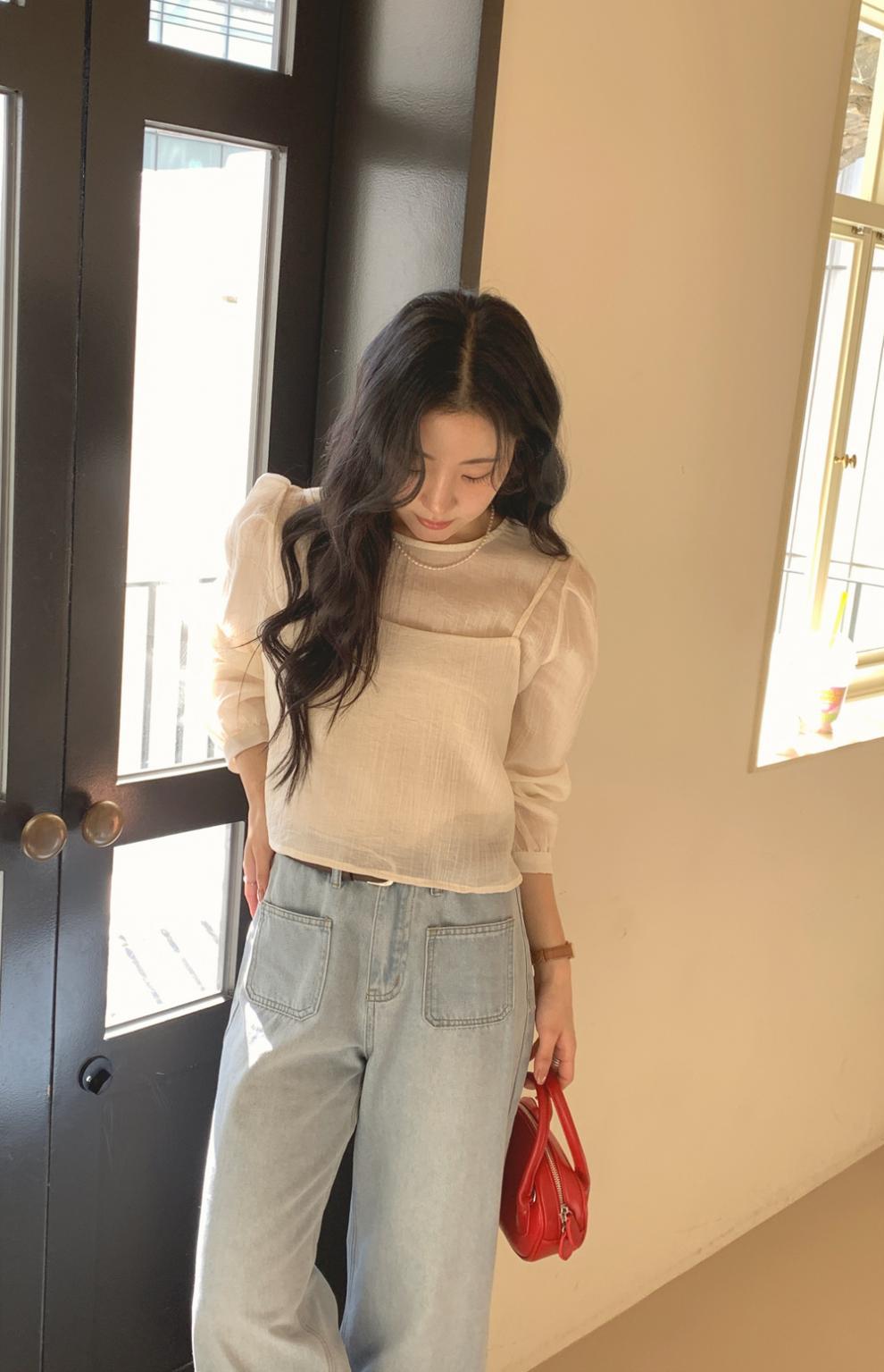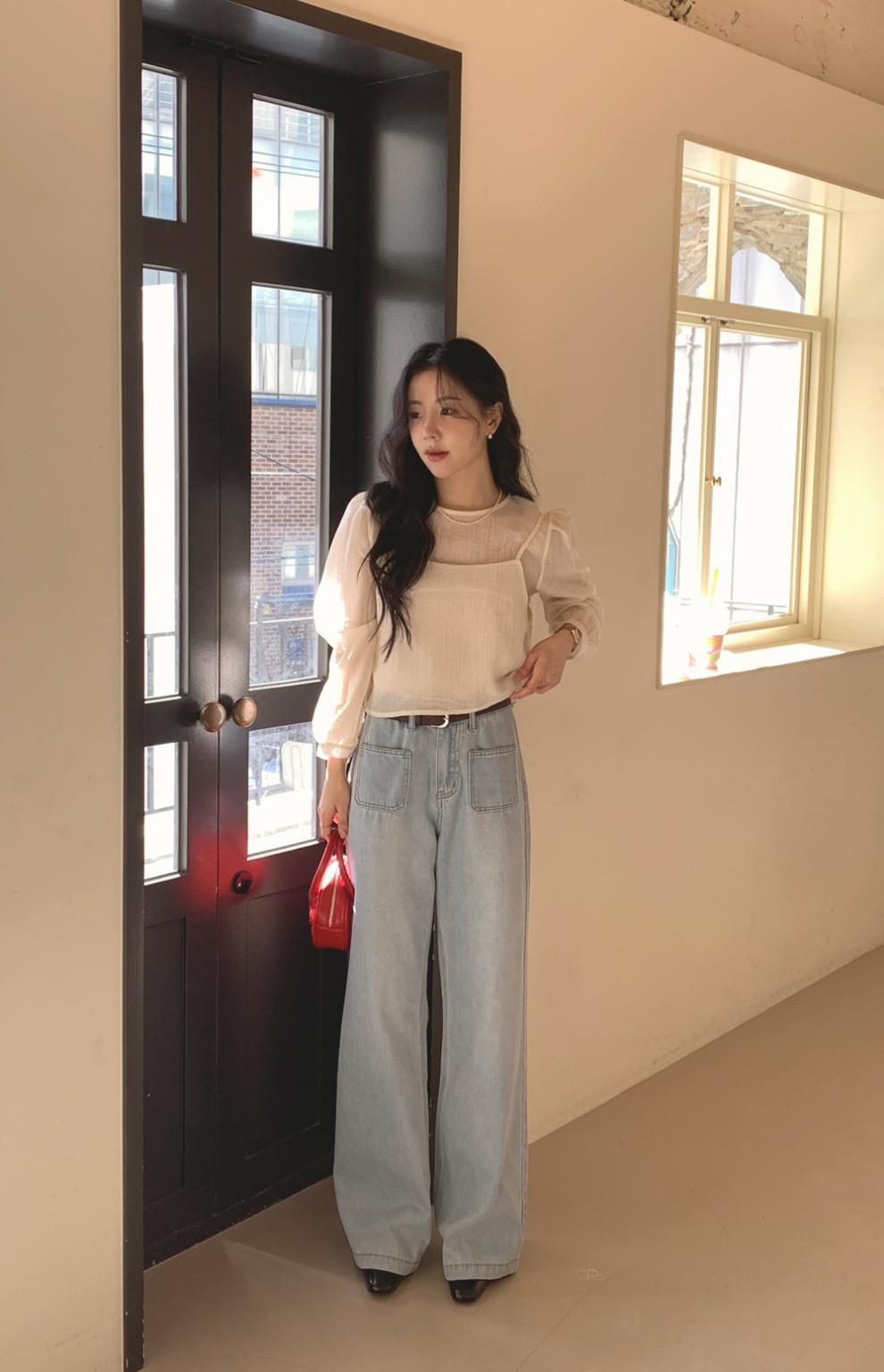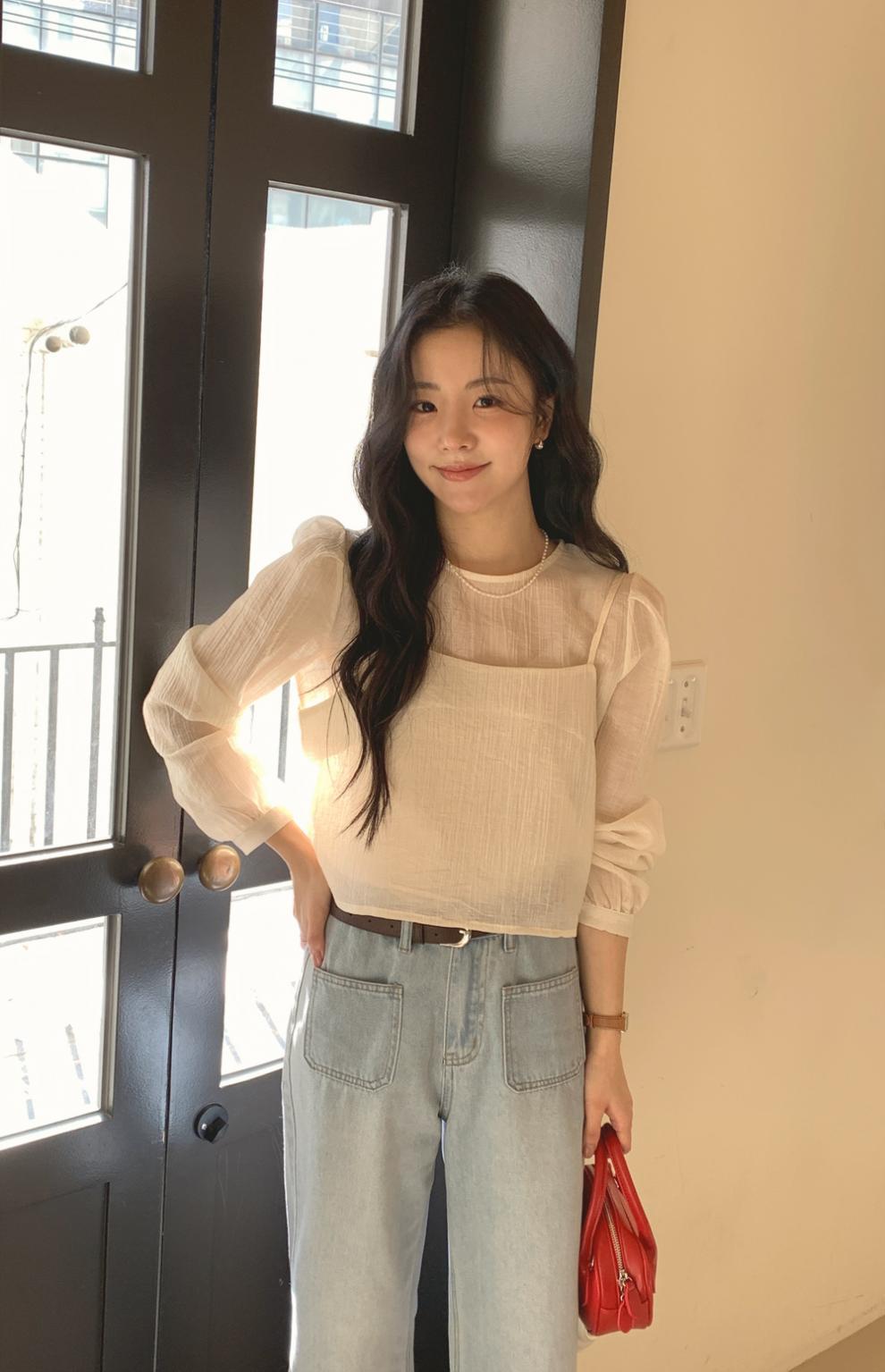 한국 chic2025 봄 신상품 프렌치 니치 시스루 셔츠 캐미솔 긴팔 셔츠 여성용 투피스 세트스토어 가기