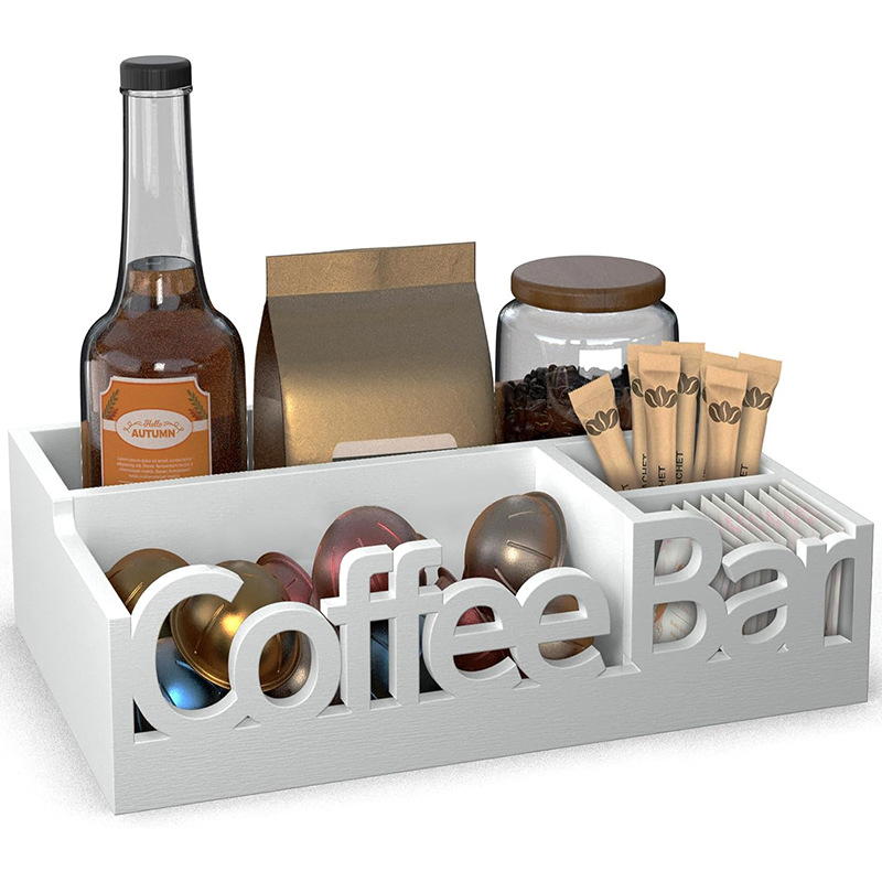 나무 보관 상자 데스크탑 커피 보관 스테이션 분리형 종이컵 홀더 티백 커피 캡슐 단단한 나무 보관 상자스토어 가기