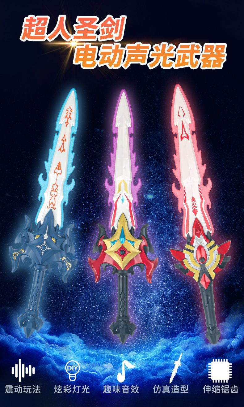 국경 간 어린이 칼 빛나는 레이저 울트라 칼 무기 플래시 전기 조명 음악 장난감 노점 도매
