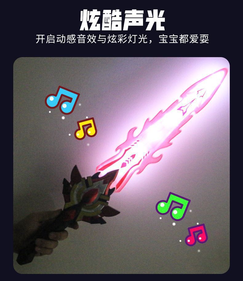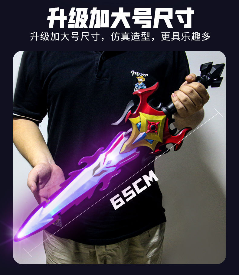 국경 간 어린이 칼 빛나는 레이저 울트라 칼 무기 플래시 전기 조명 음악 장난감 노점 도매스토어 가기