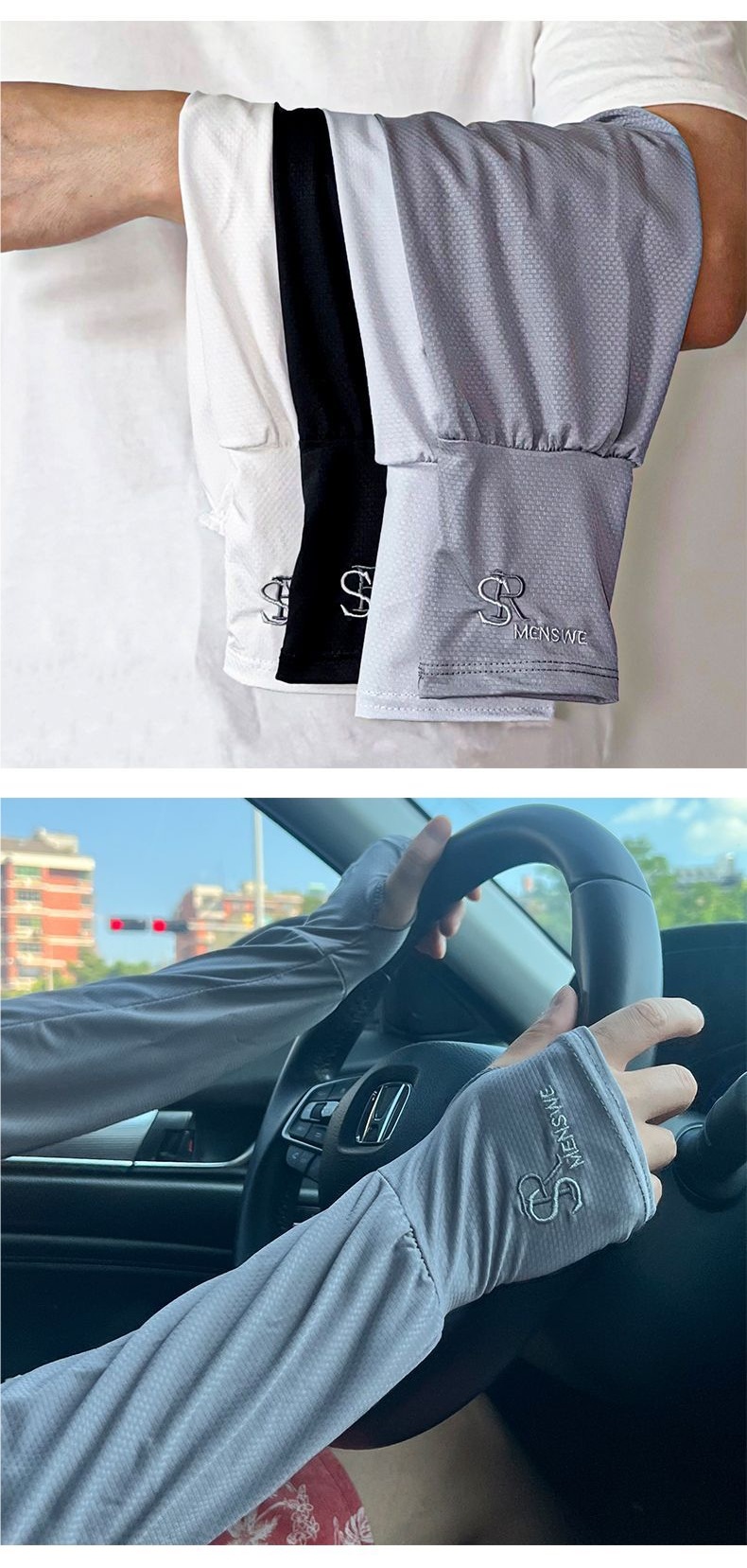 남성용 자외선 차단 아이스 슬리브, 여성용 루즈한 대형 여름 아이스 실크 슬리브, 자외선 차단 장갑, 사이클링 및 운전 팔 슬리브
