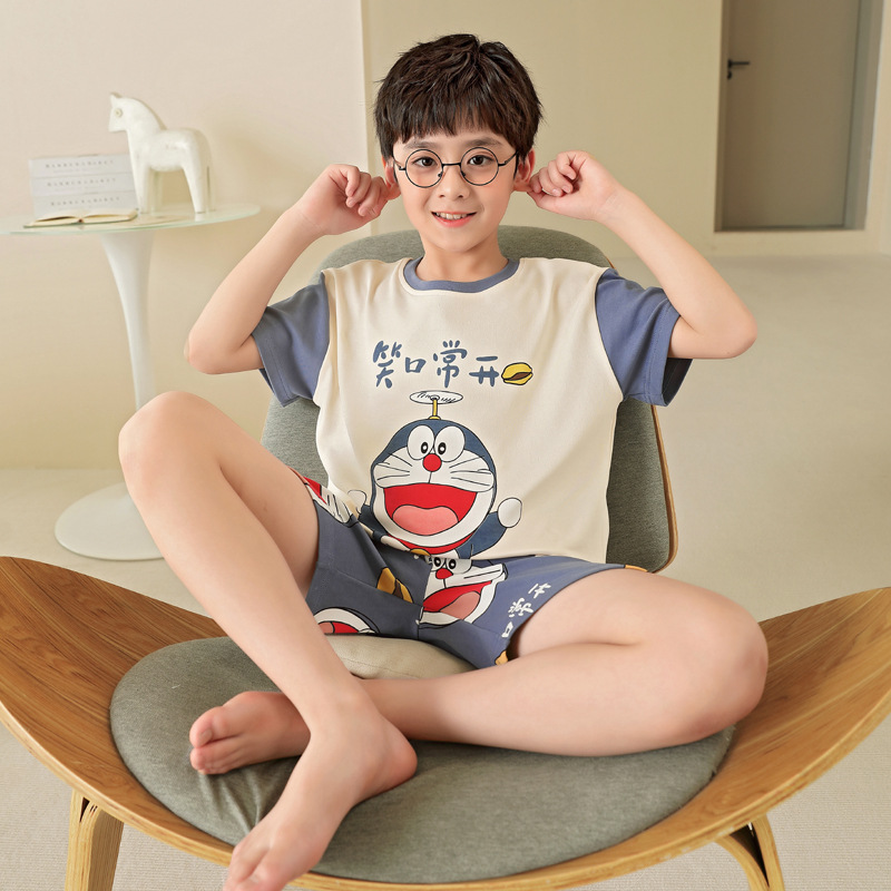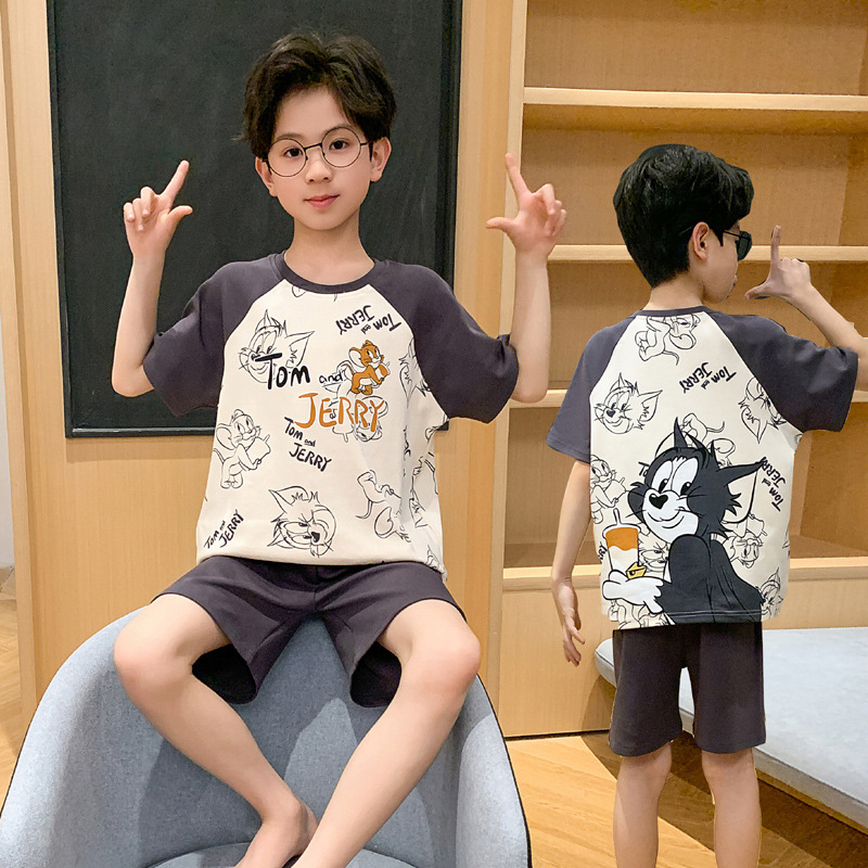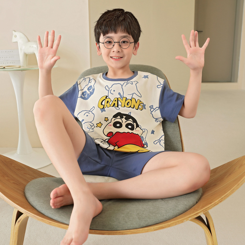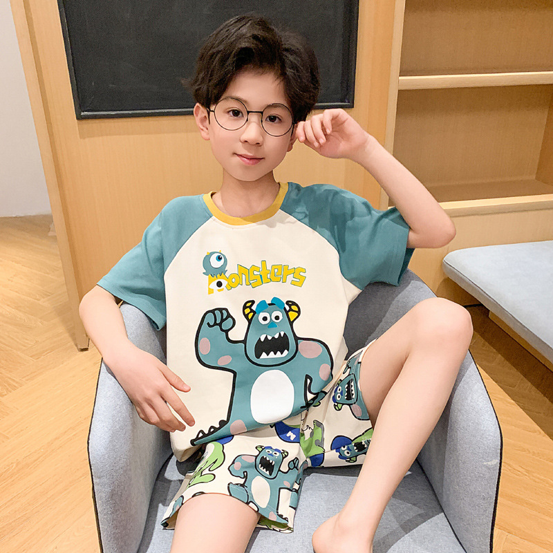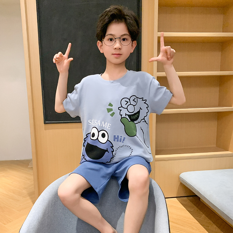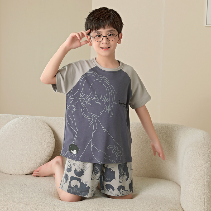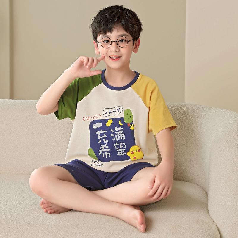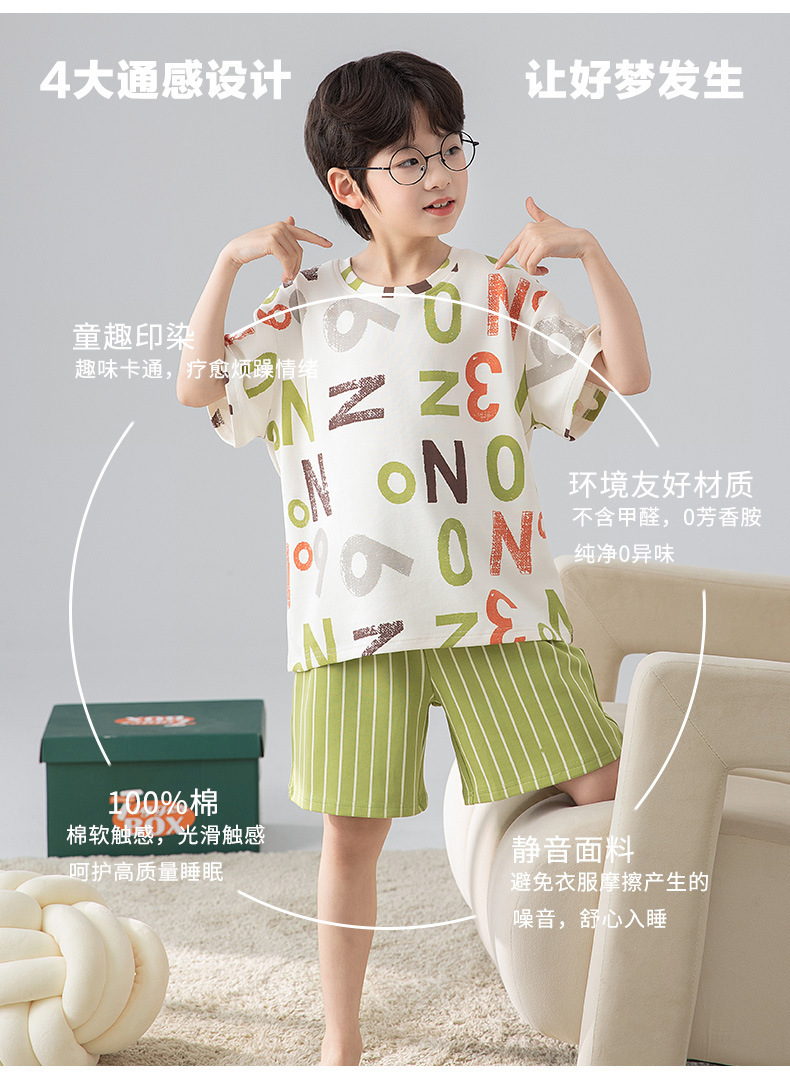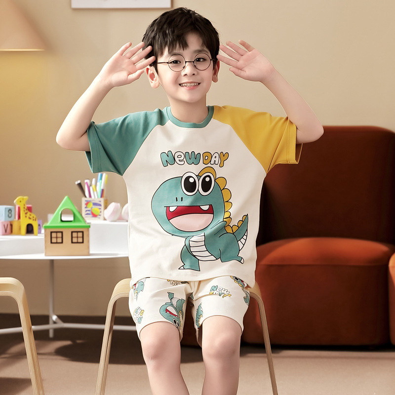 소년 잠옷 어린이 여름 순수 코튼 반팔 반바지 얇은 2025 새로운 소년 여름 가정 의류 세트