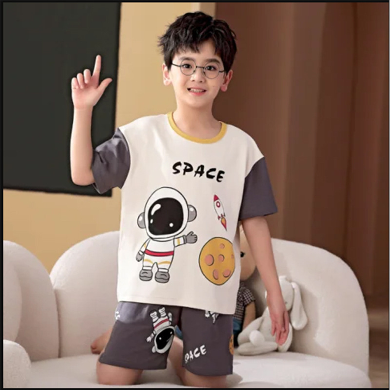 소년 잠옷 어린이 여름 순수 코튼 반팔 반바지 얇은 2025 새로운 소년 여름 가정 의류 세트스토어 가기